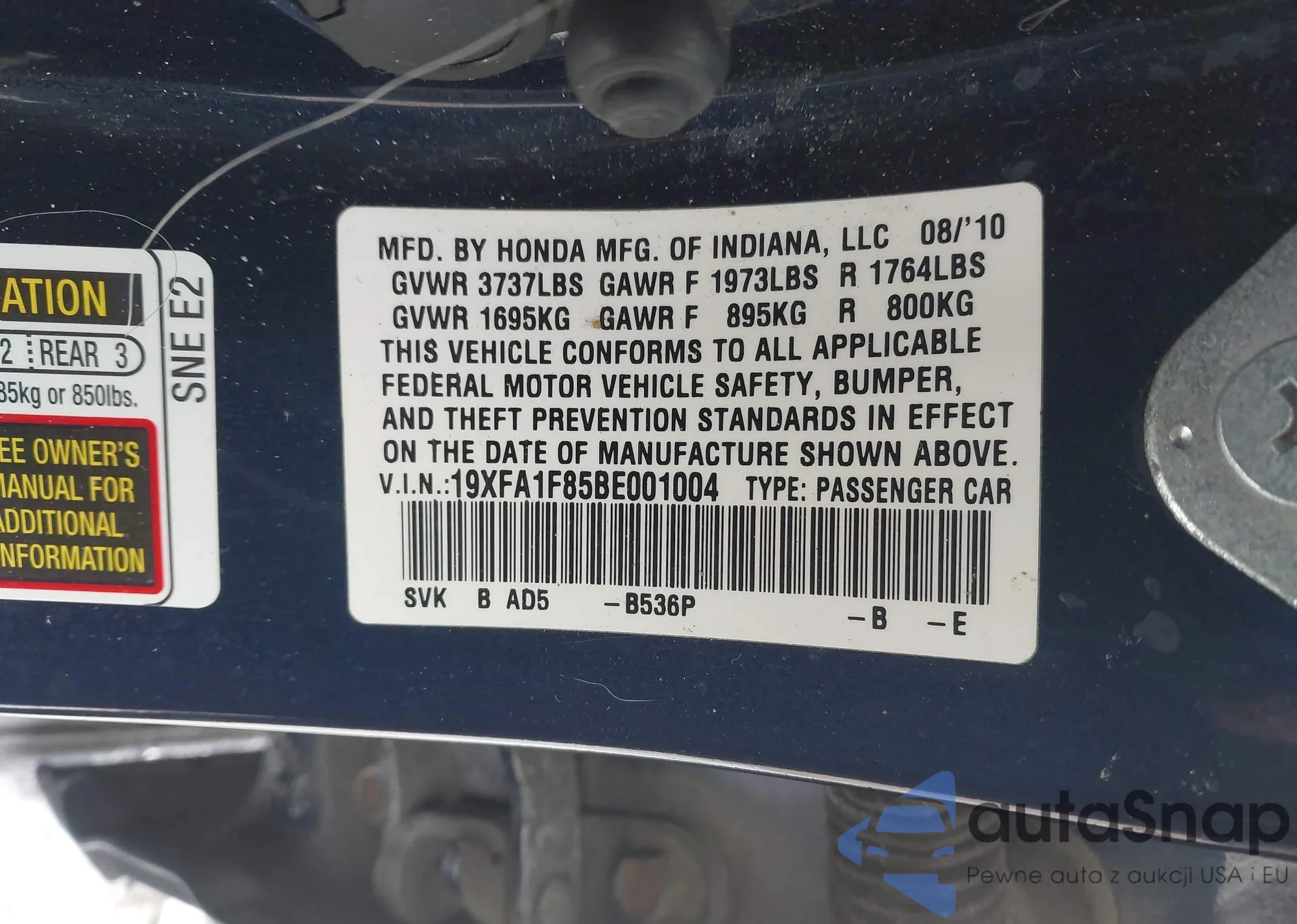 • VIN 1HGCP2F38BA148546