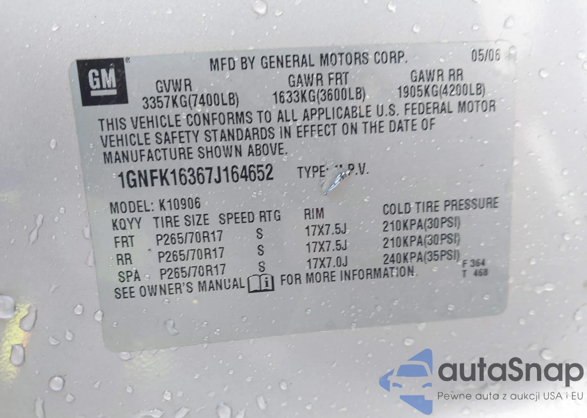 LOT: 44297228 VIN: 1GNFK16367J164652