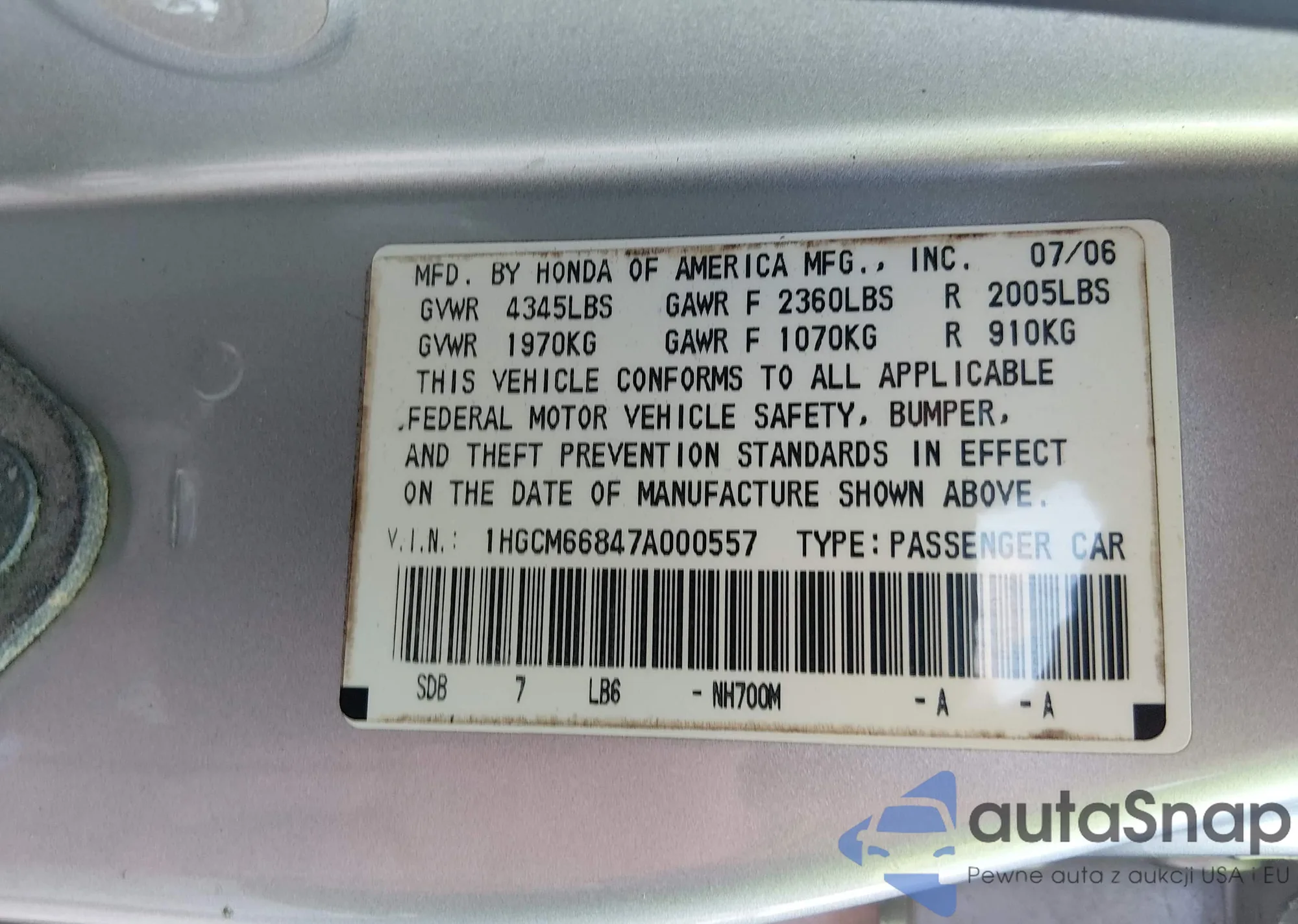 • VIN 5J6YH28675L004434