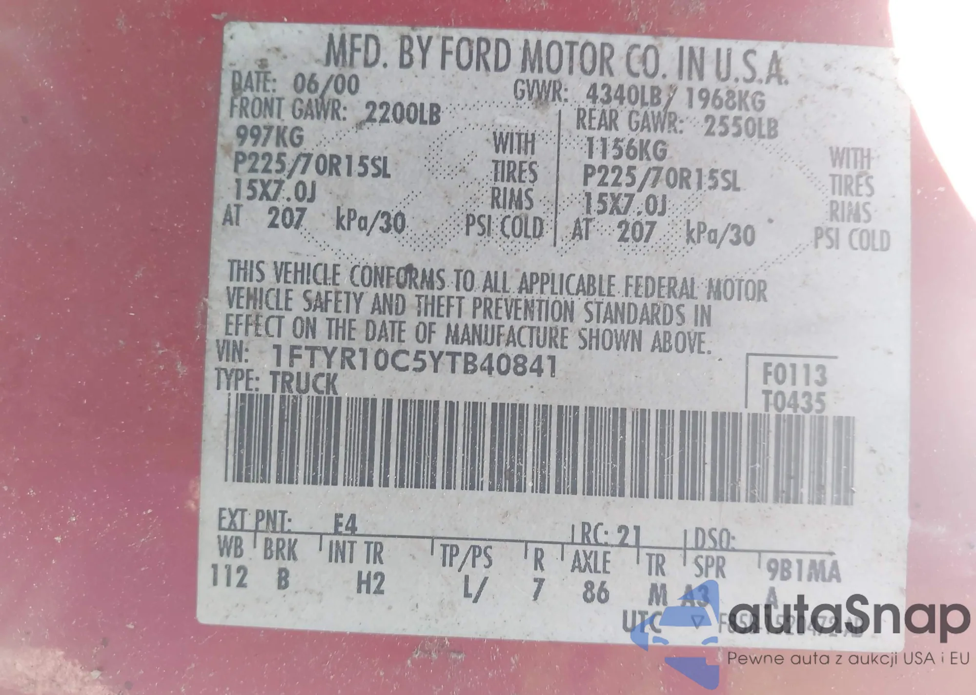 • VIN 1FTYR10C5YTB40841