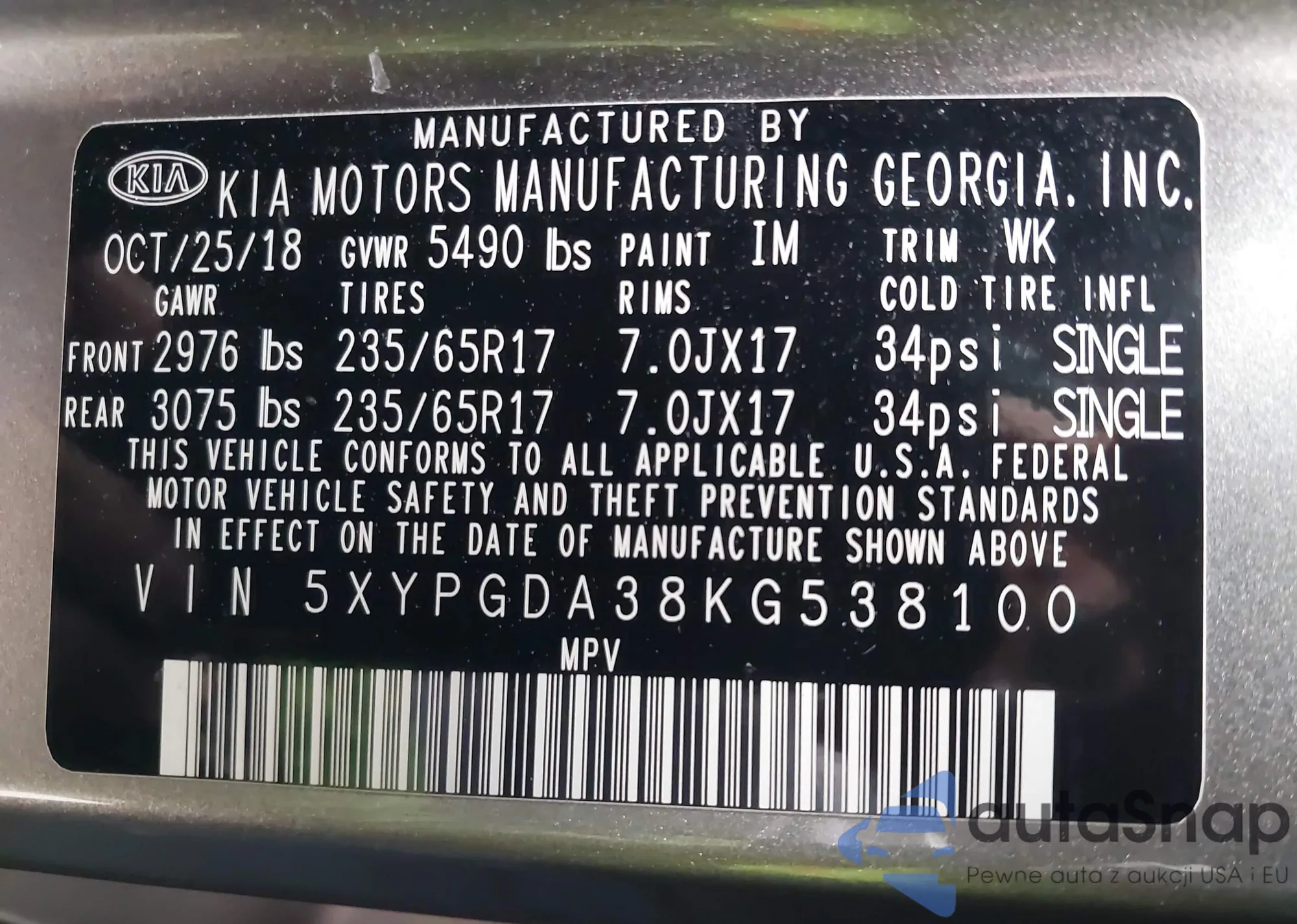 LOT: 44011538 VIN: KNAGM4A72F5644145