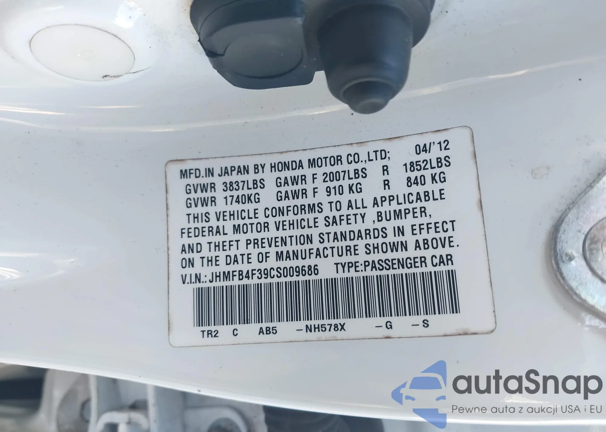 LOT: 44073188 VIN: 2HGFE4F82TH319157