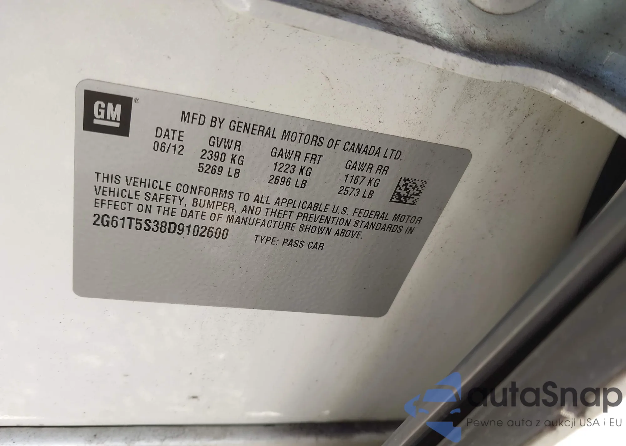 LOT: 44142234 VIN: 2G61T5S38D9102600