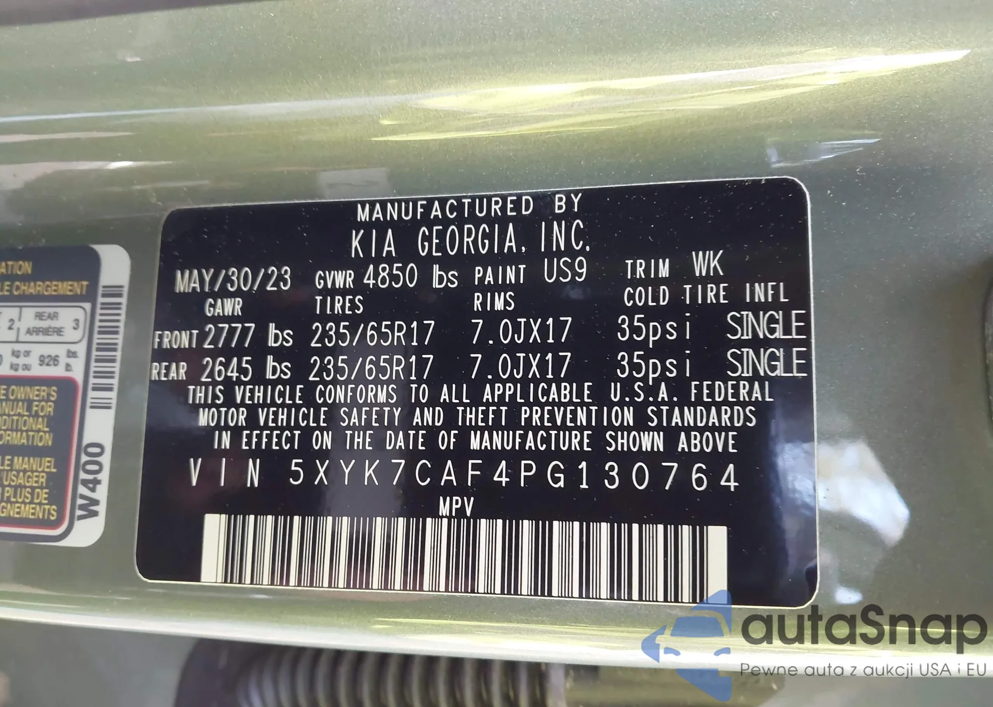 • VIN 5XYK7CAF4PG130764