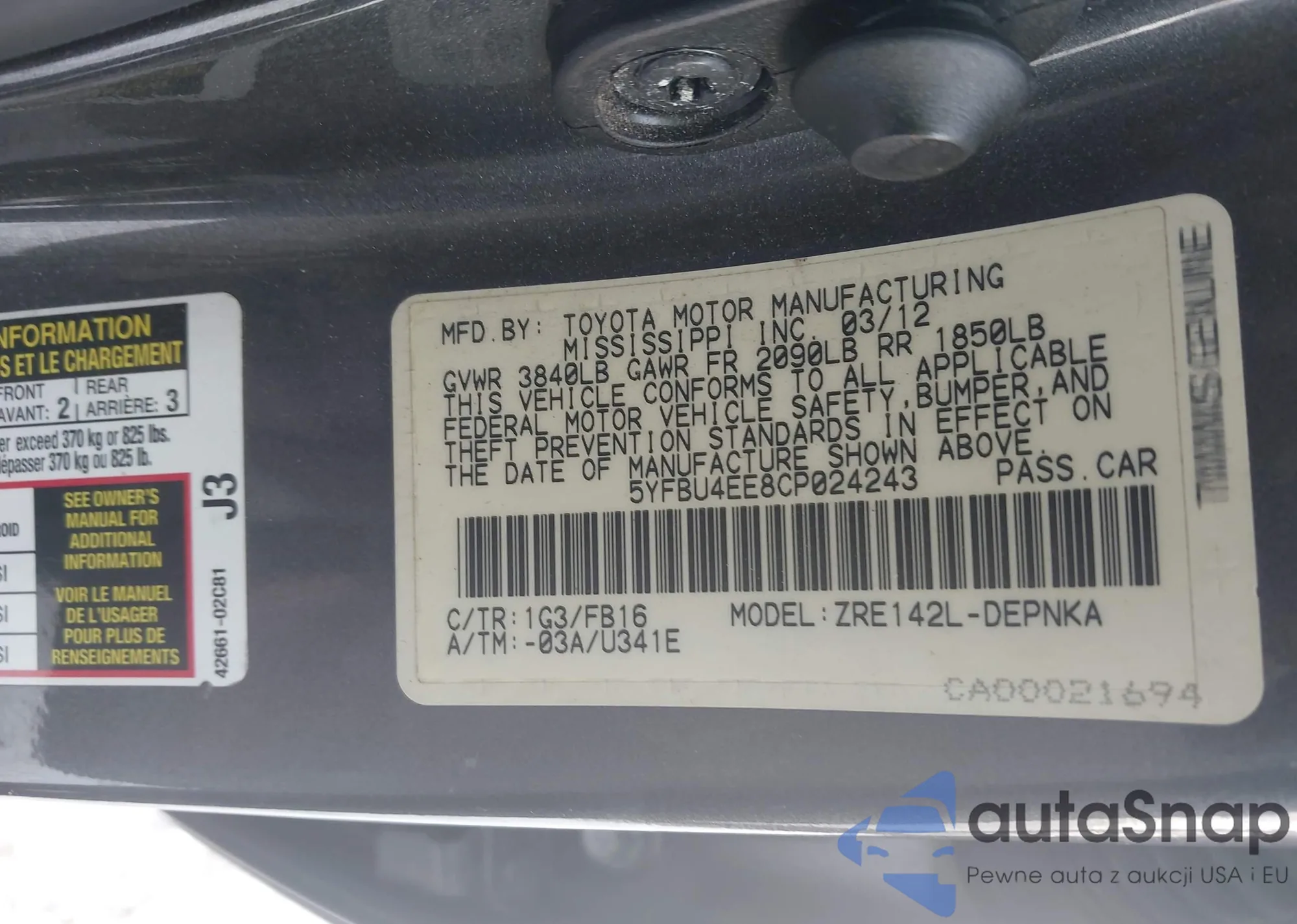 LOT: 43937363 VIN: 5YFBU4EE8CP024243