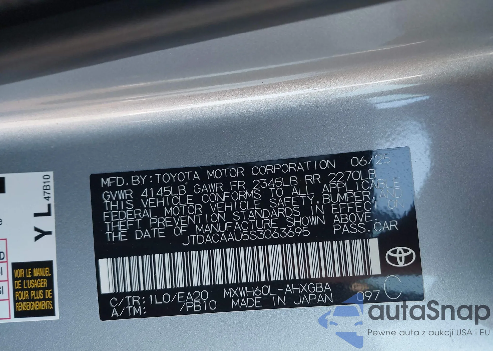 LOT: 44289425 VIN: JTDKDTB33F1581227