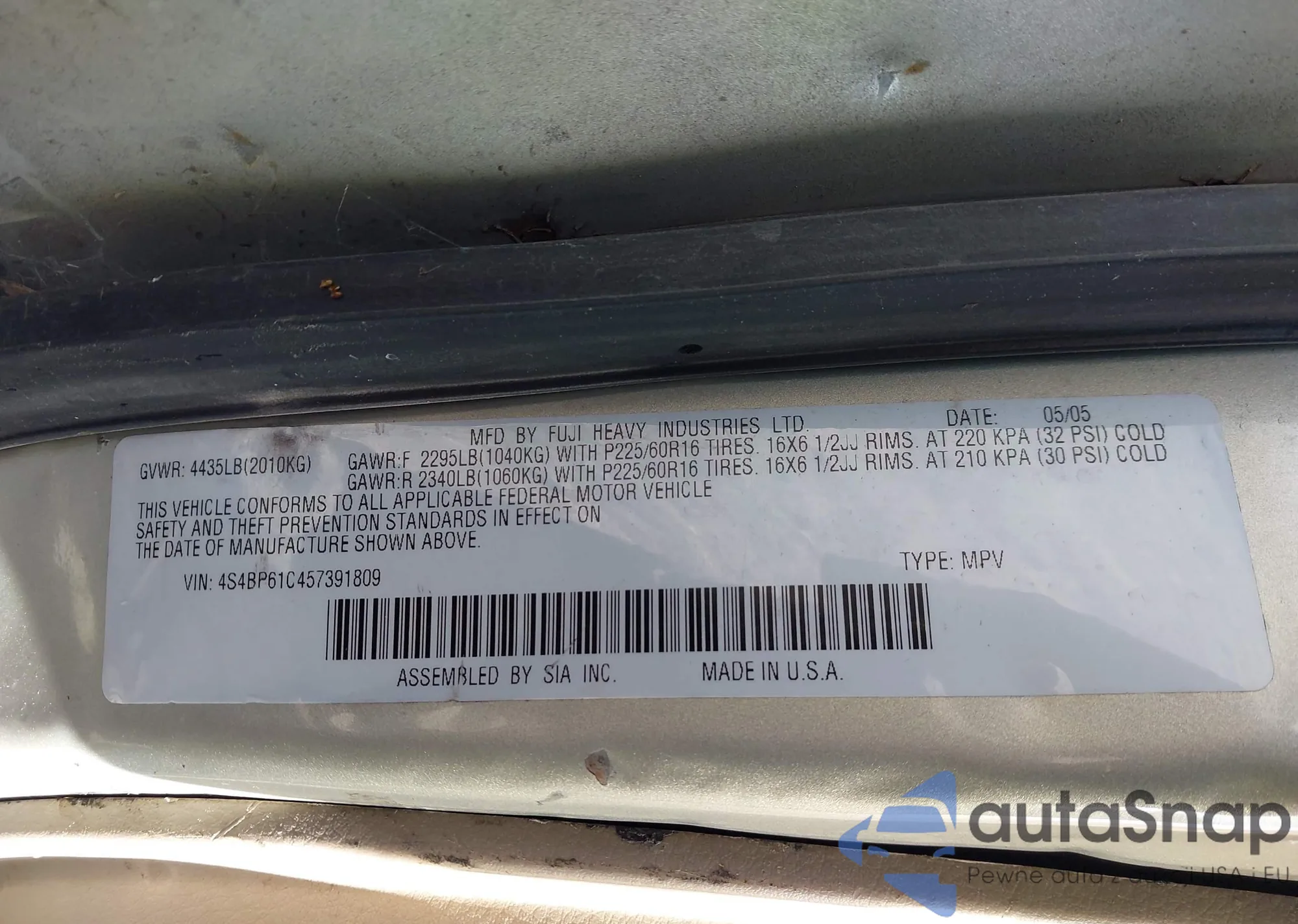 • VIN 4S4BP61C457391809
