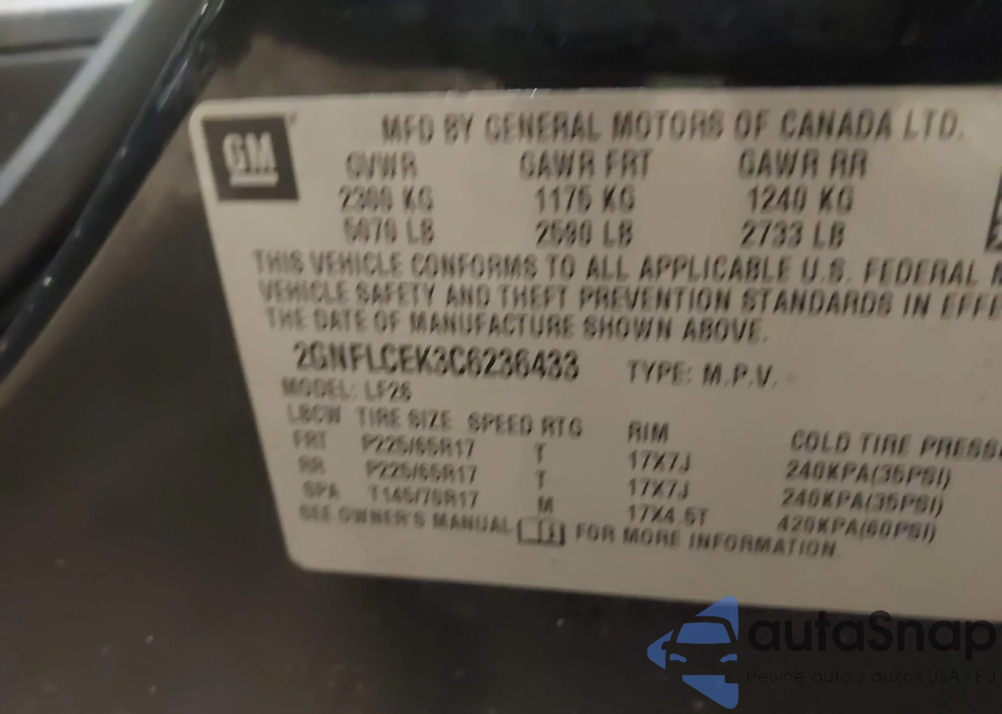 • VIN 2GNFLCEK3C6236433