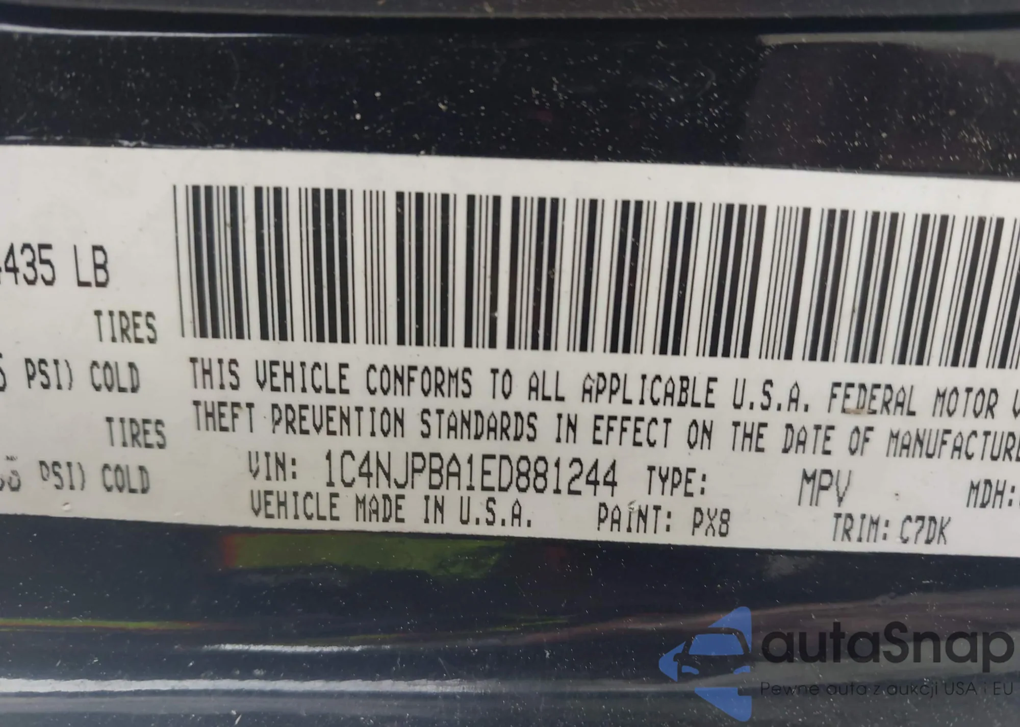 • VIN 1C4NJPBA1ED881244