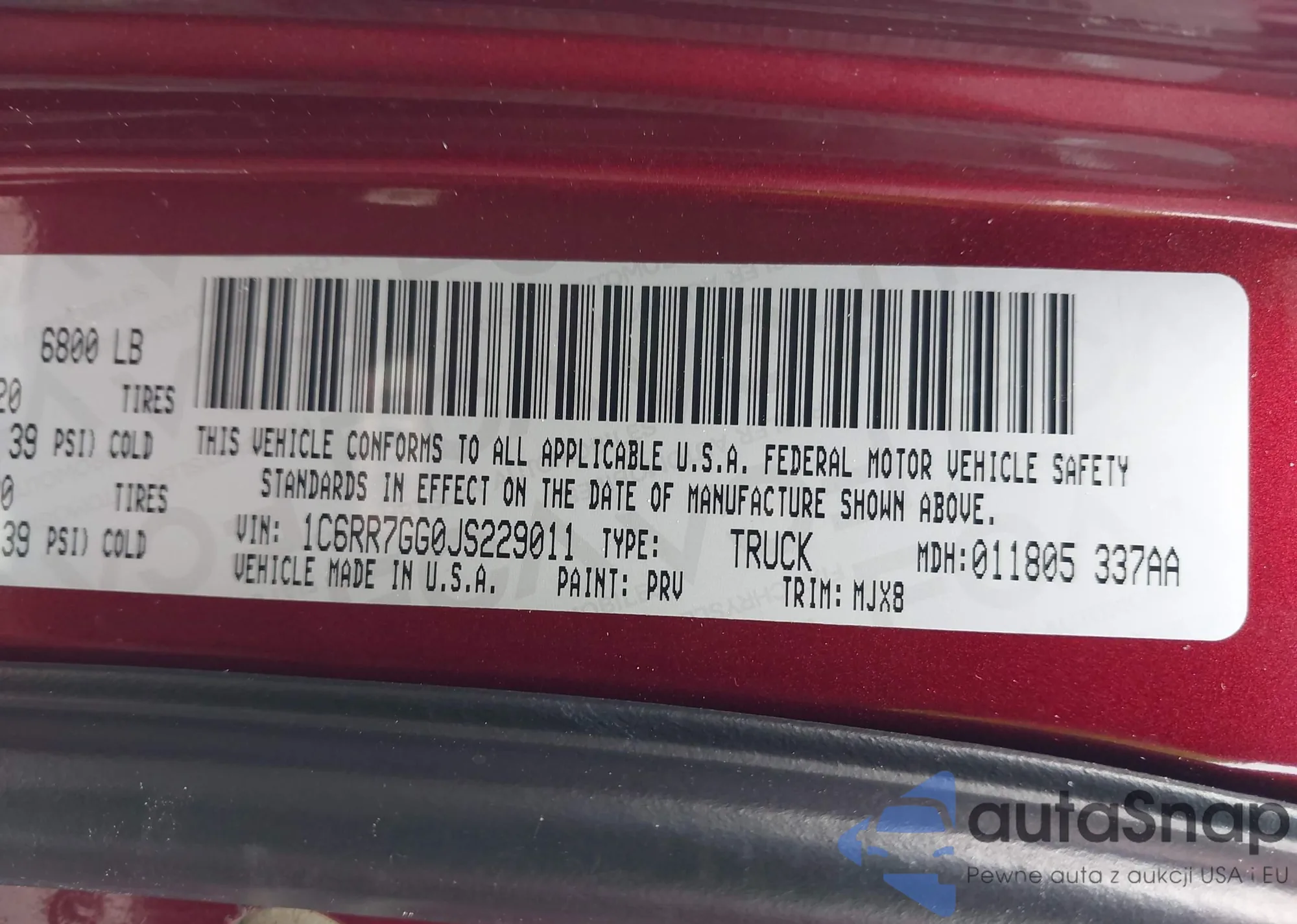 • VIN 1C6RR7GG0JS229011