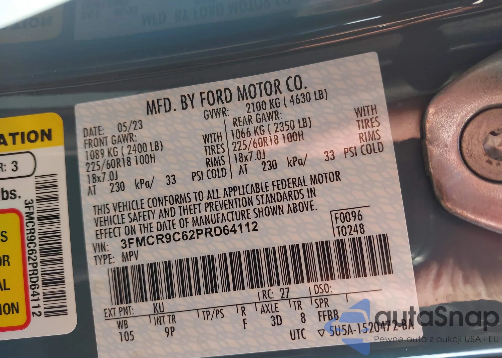 LOT: 43949205 VIN: 3FMCR9C62PRD64112