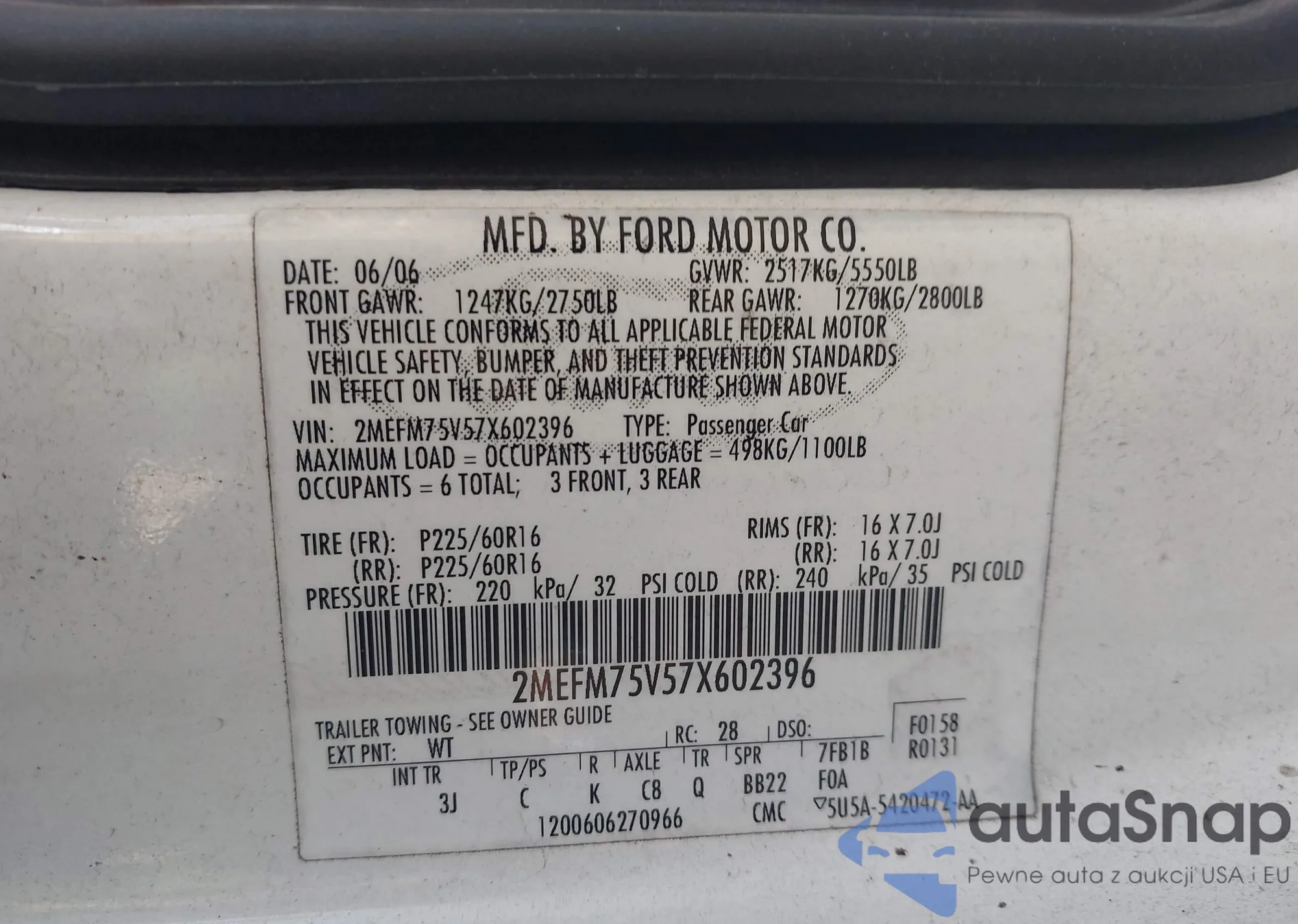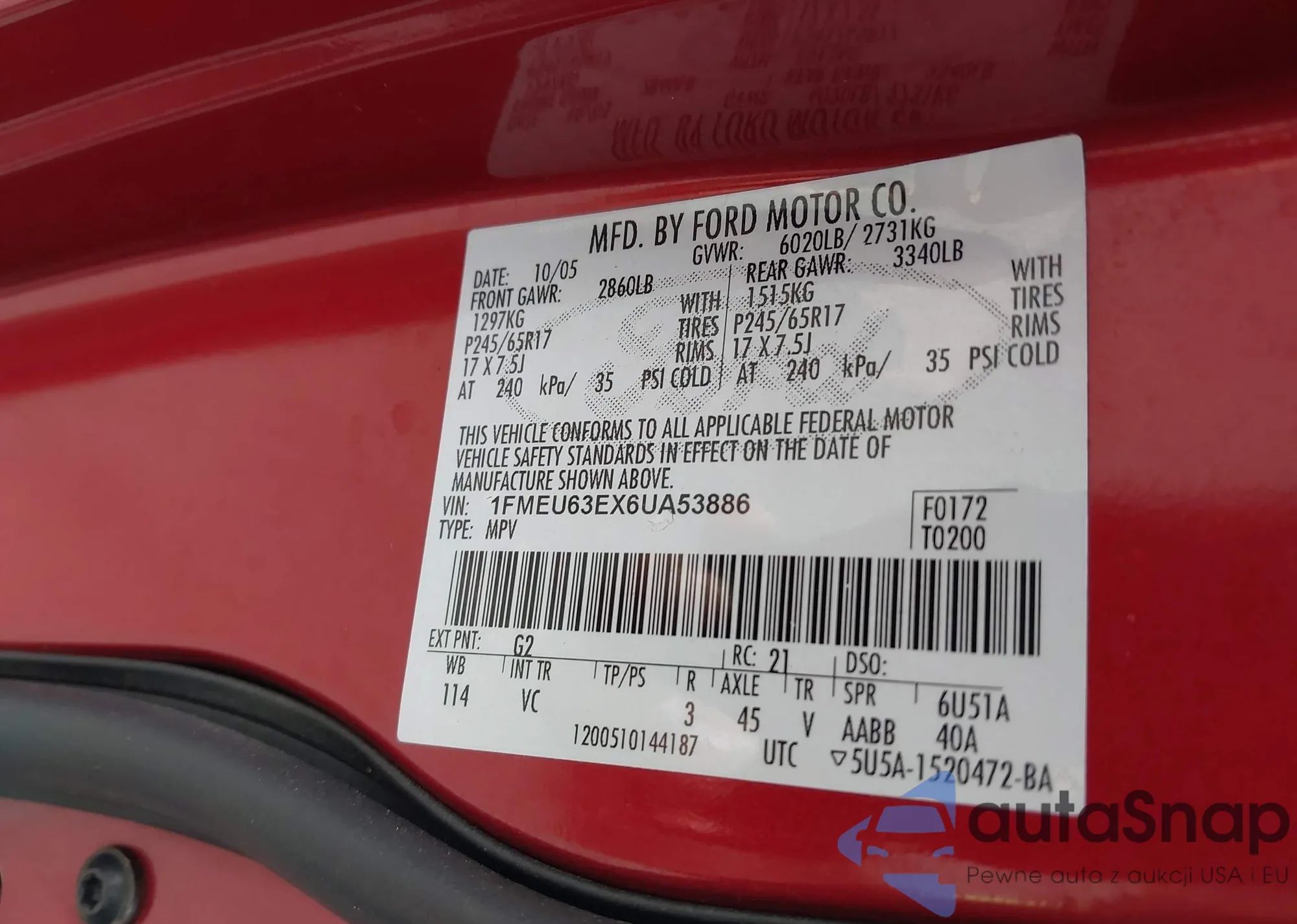 • VIN 1FMEU63EX6UA53886