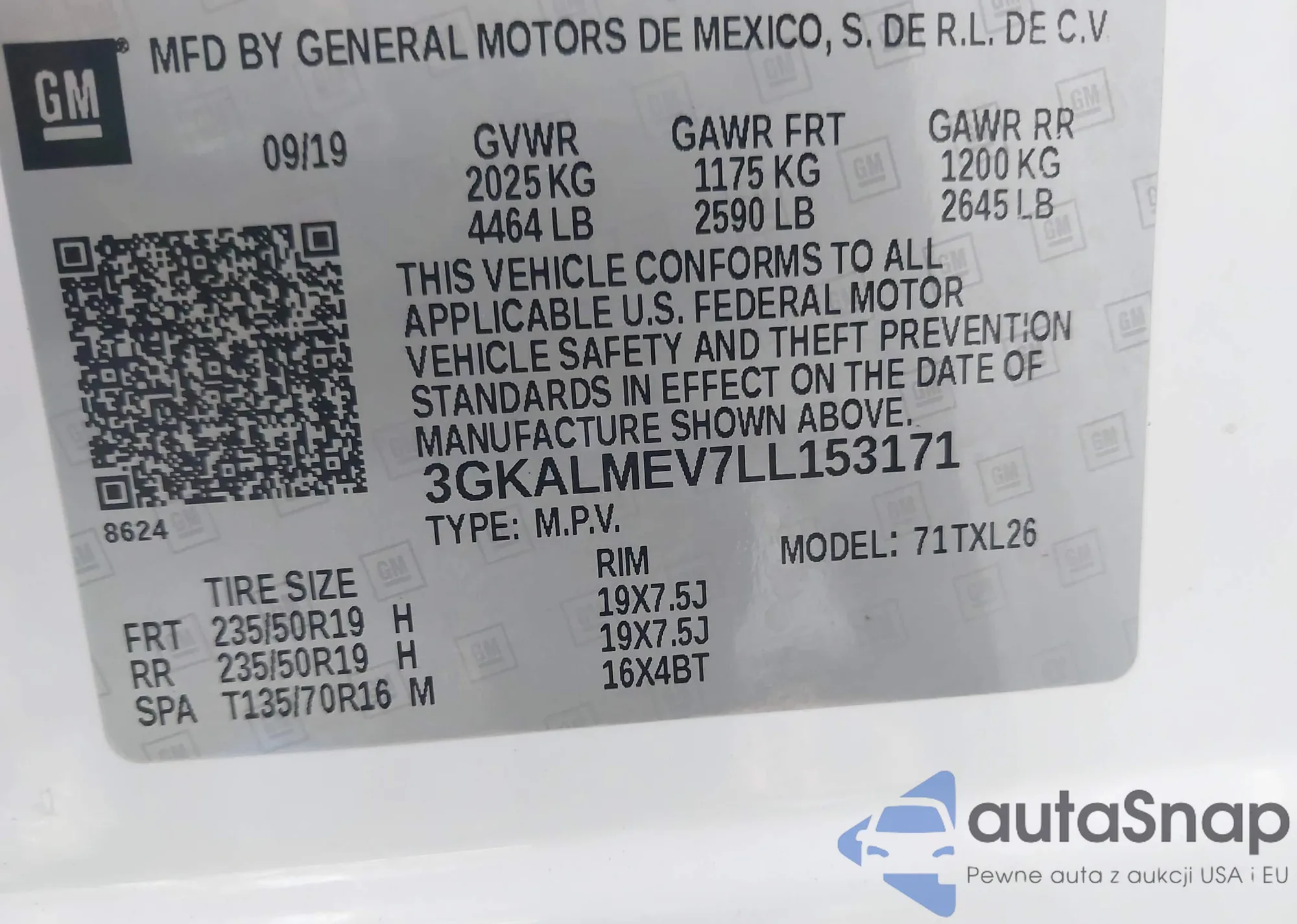 LOT: 43801873 VIN: 3GKALMEV7LL153171