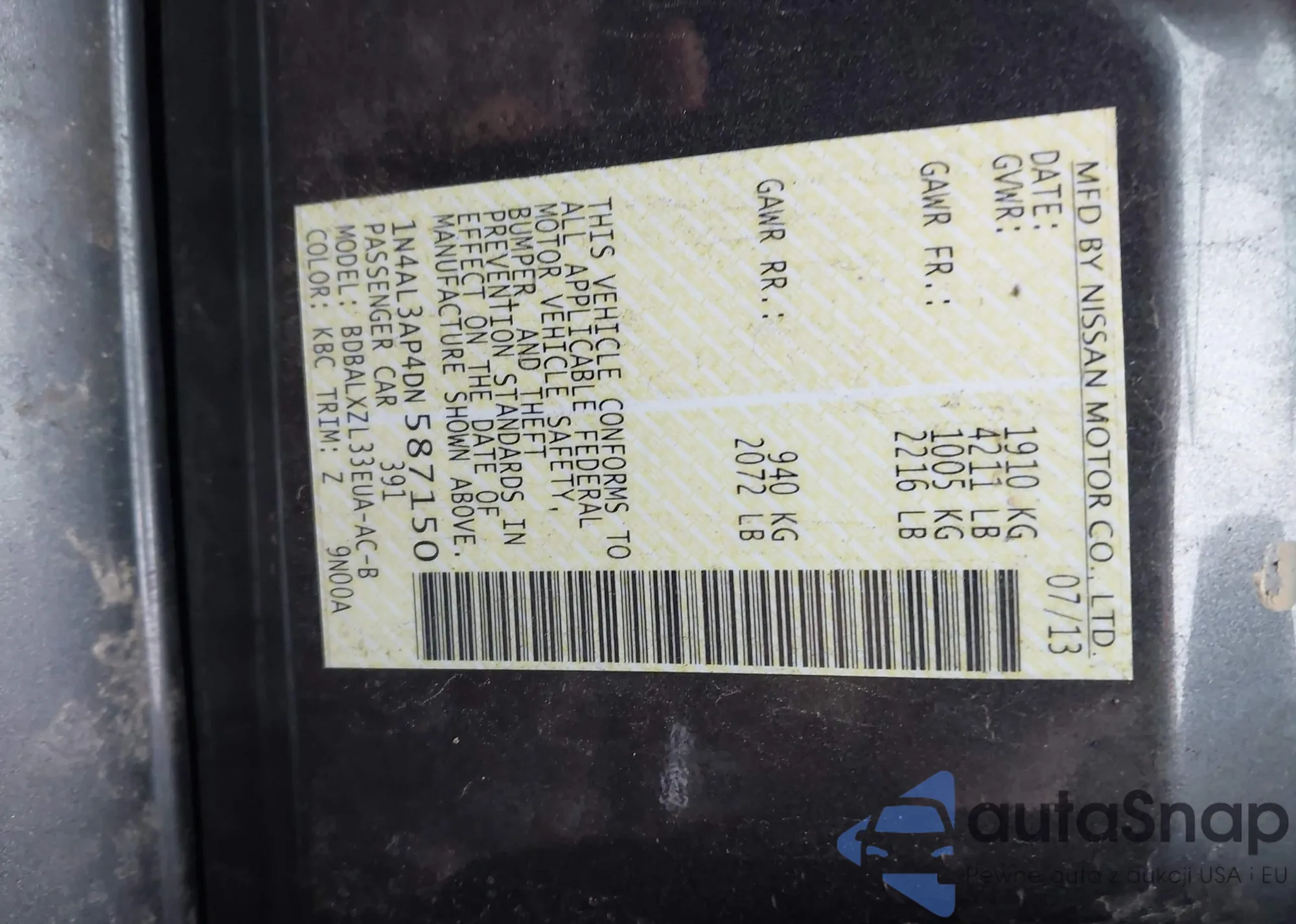 LOT: 44383475 VIN: 1N4AL3AP4DN587150
