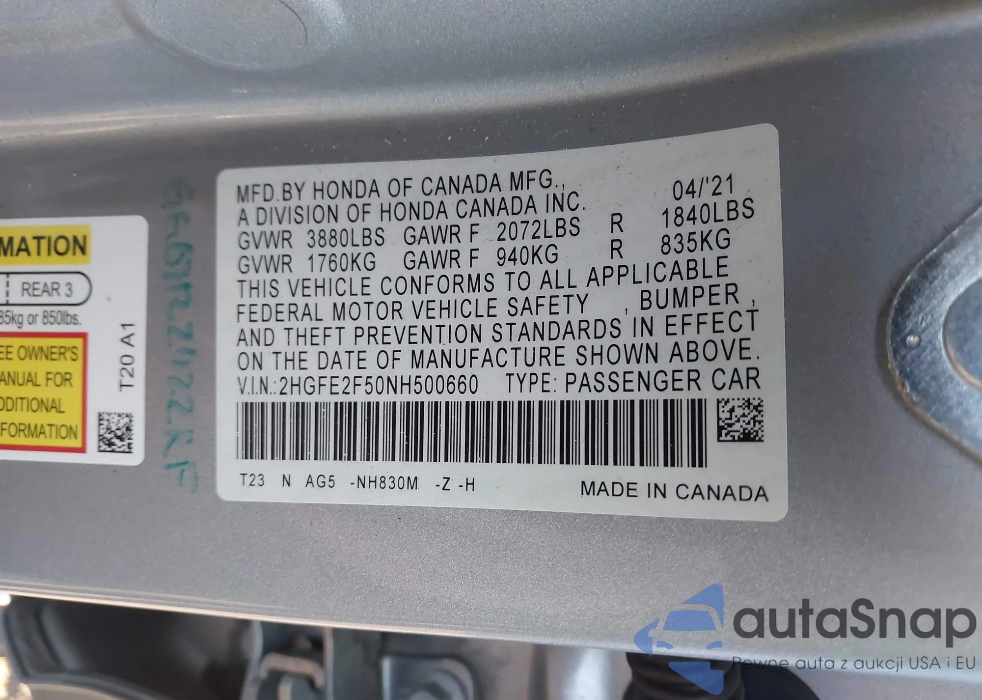 • VIN 5FNRL5H65CB017225