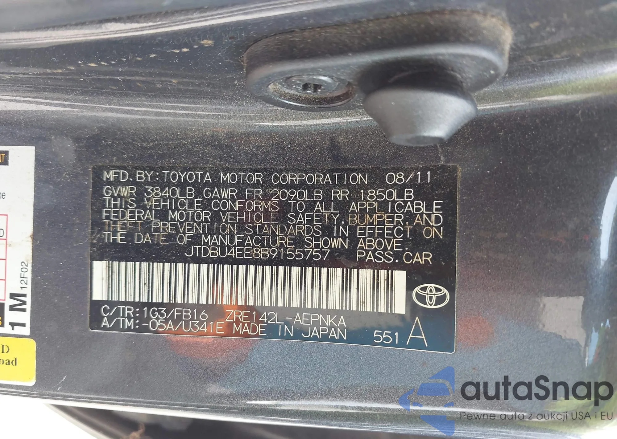 LOT: 44203463 VIN: JTDKB20U487698651