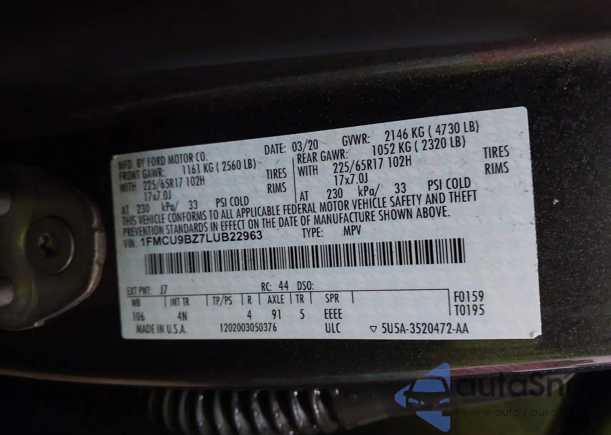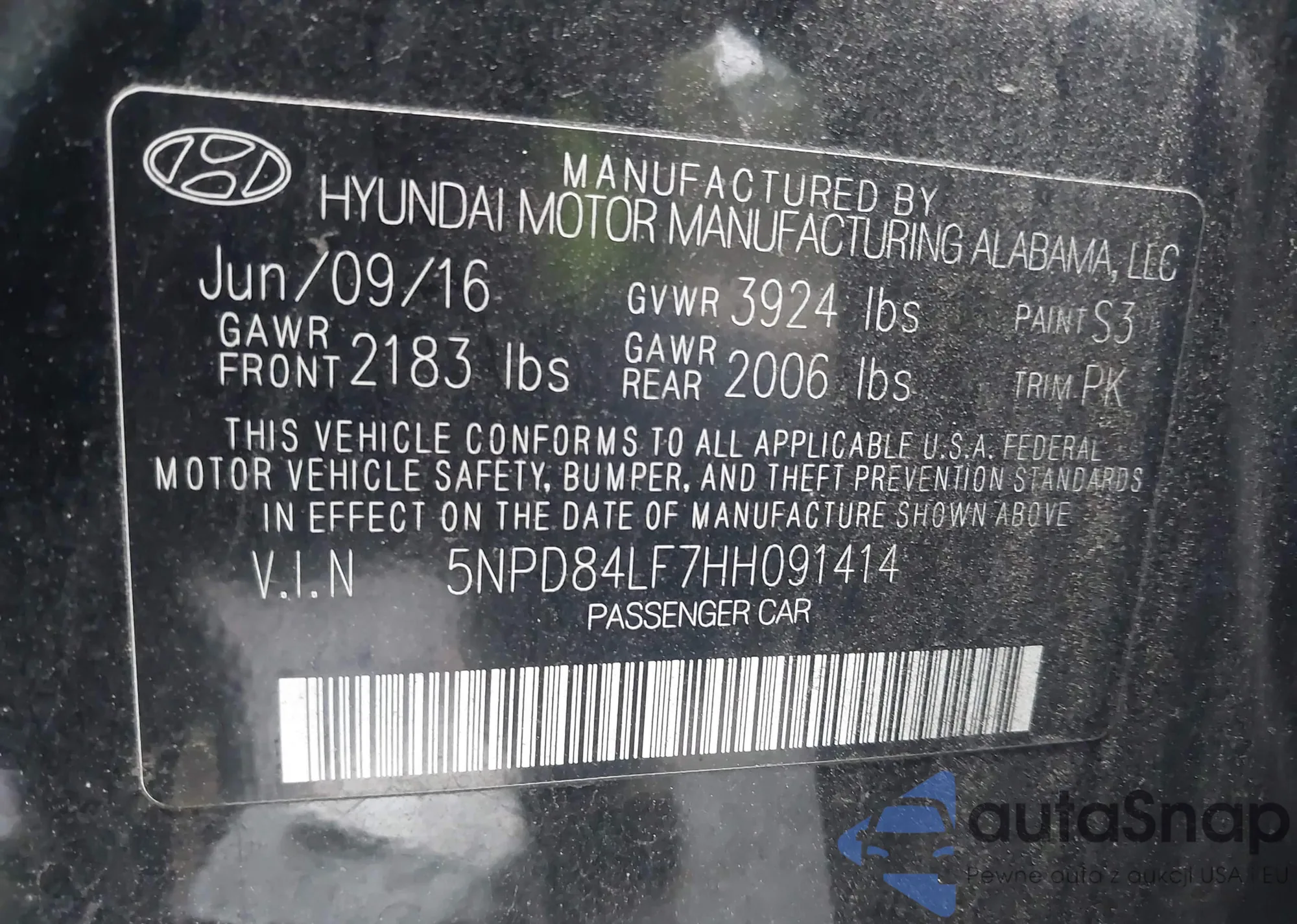 LOT: 44088474 VIN: WA1VAAF72HD026076