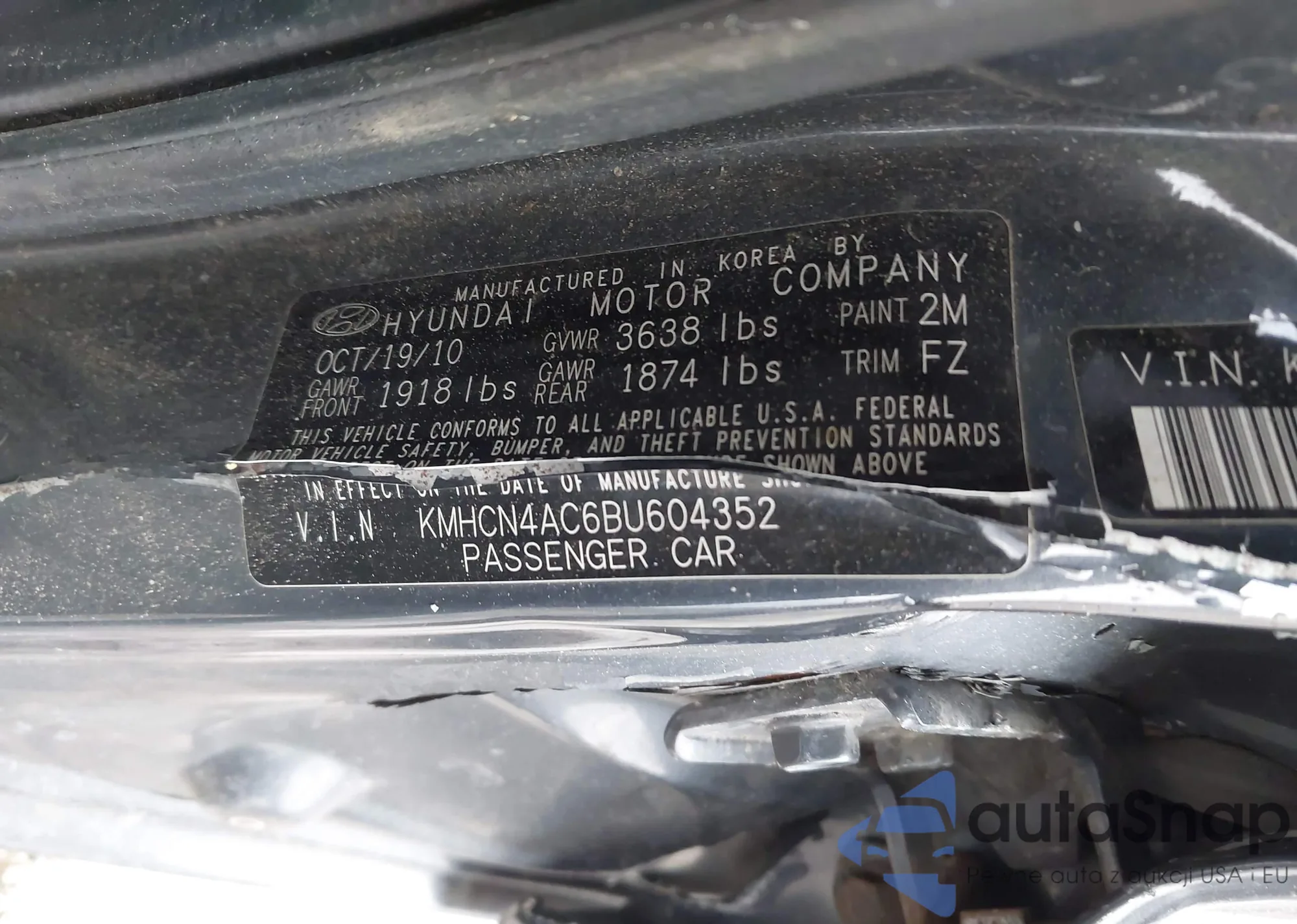 LOT: 44362468 VIN: KMHDH4AE4BU098596