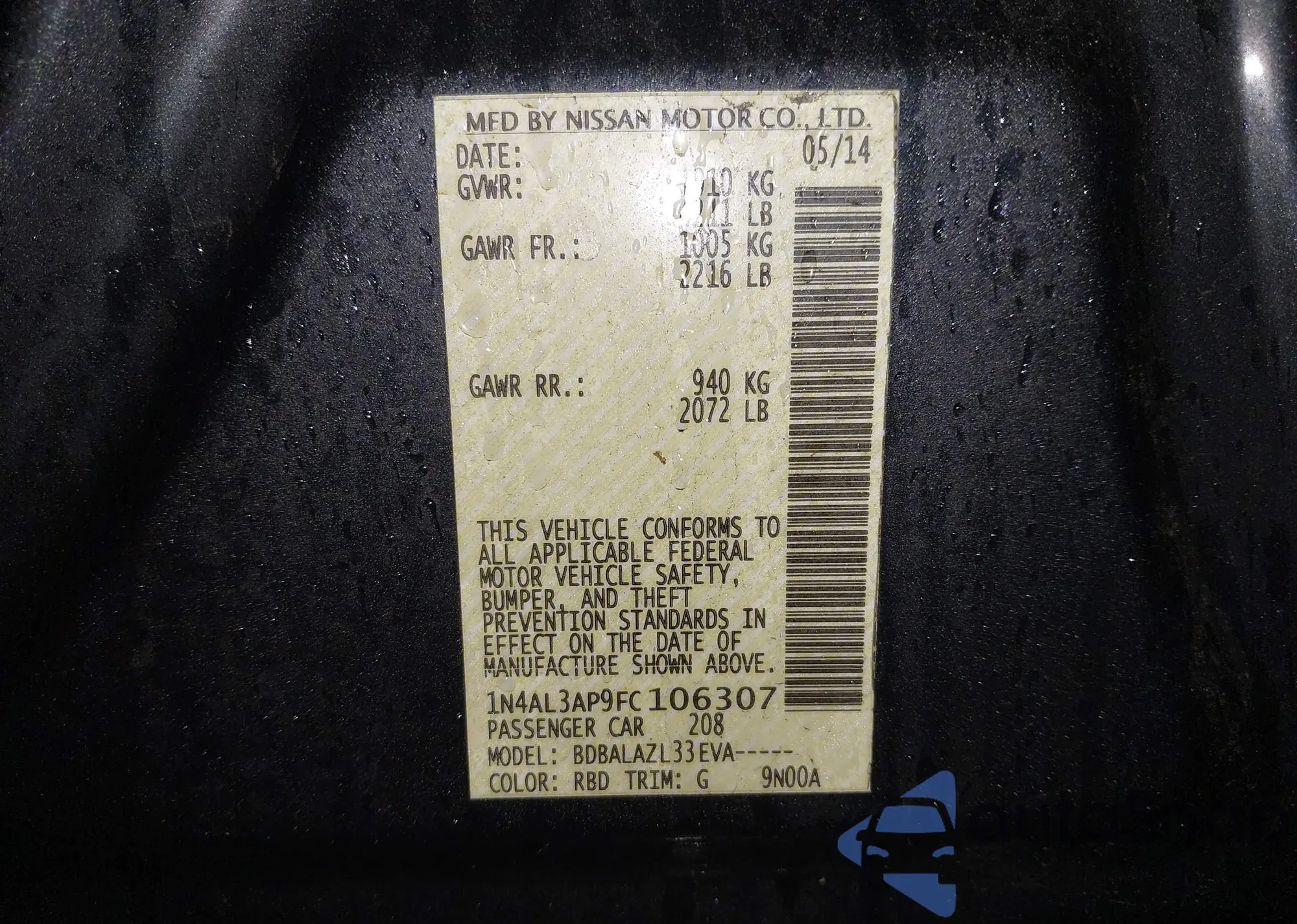 LOT: 44002163 VIN: 1N4AL3AP9FC106307