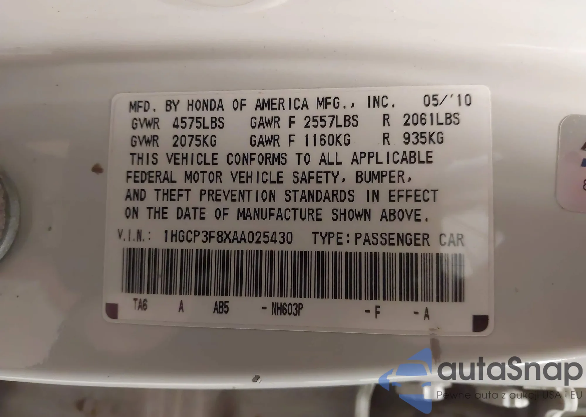 LOT: 44034983 VIN: 7FARS5H87TE002508