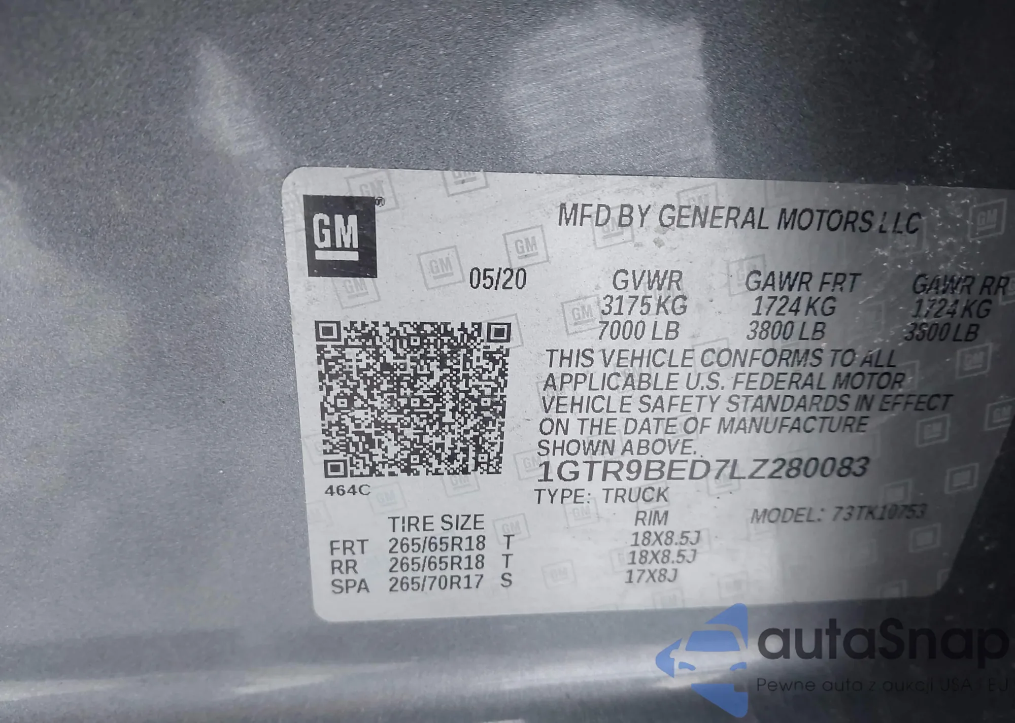 • VIN 1GTR9BED7LZ280083