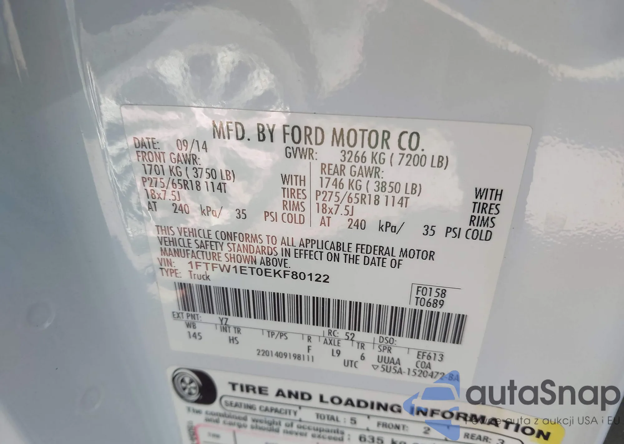 LOT: 44199013 VIN: 1FTFW1ET0EKF80122