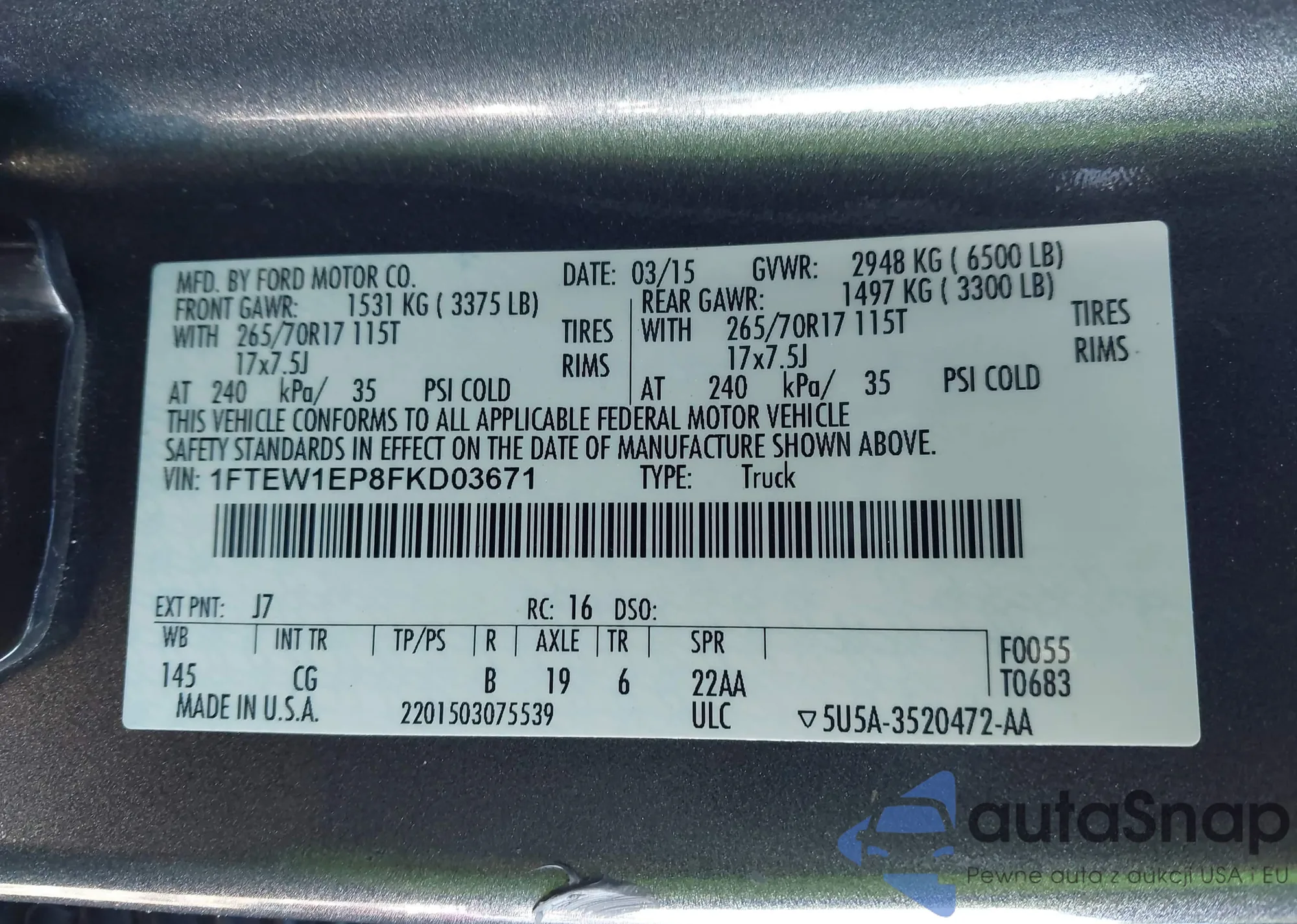 • VIN 1FTEW1EP8FKD03671