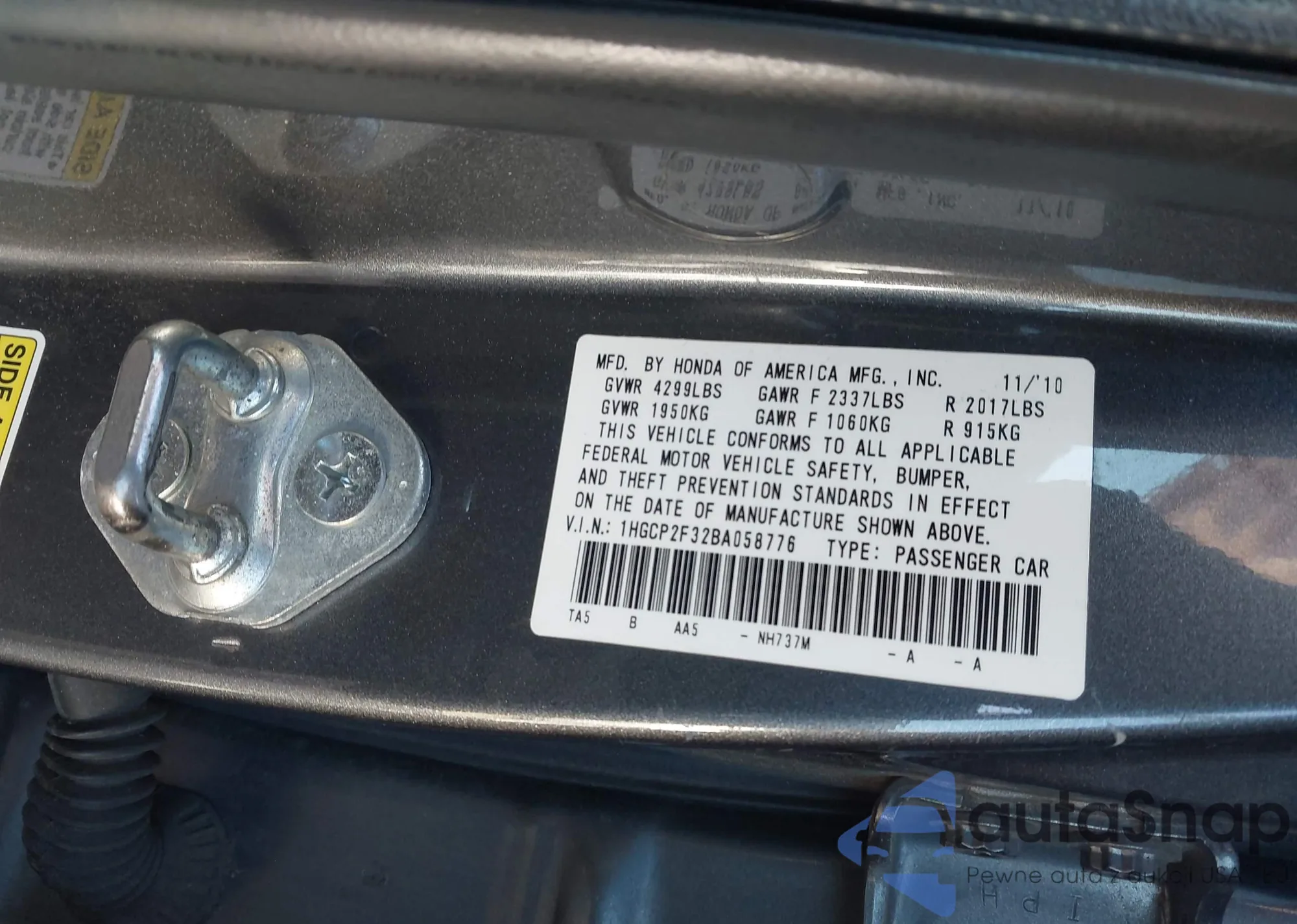 • VIN 1HGCP2F32BA058776