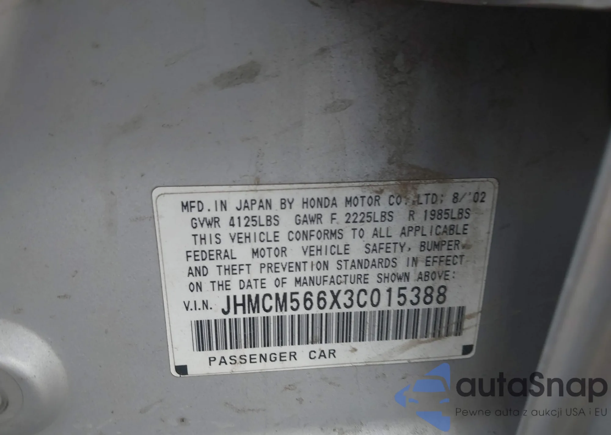 • VIN 0JHMCM566X3C01538
