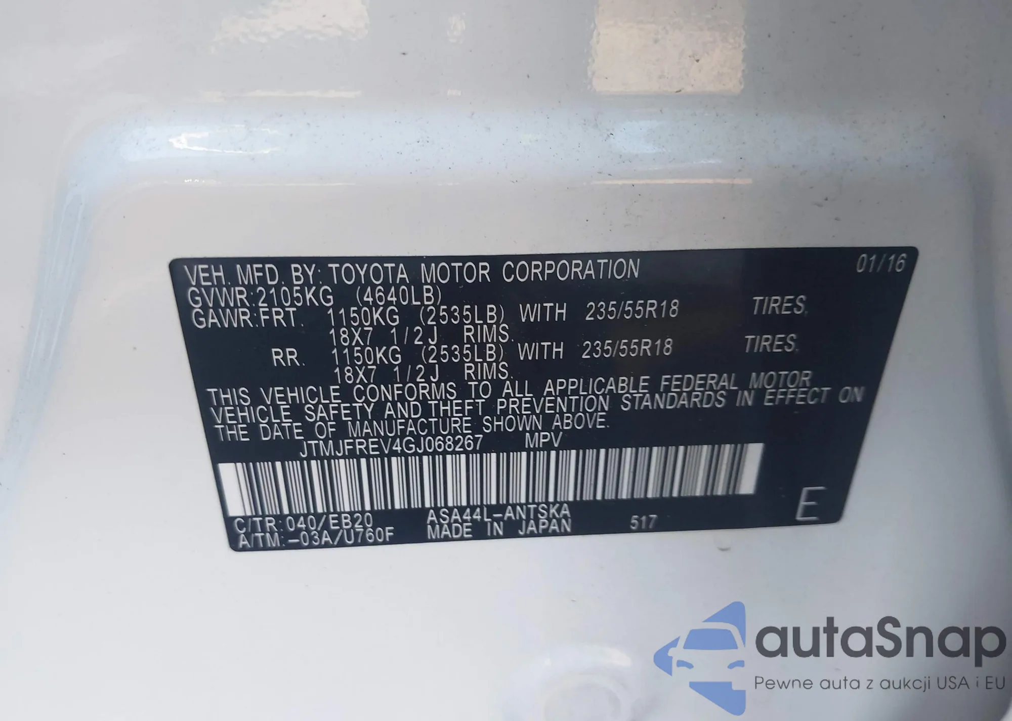 • VIN JTMJFREV4GJ068267