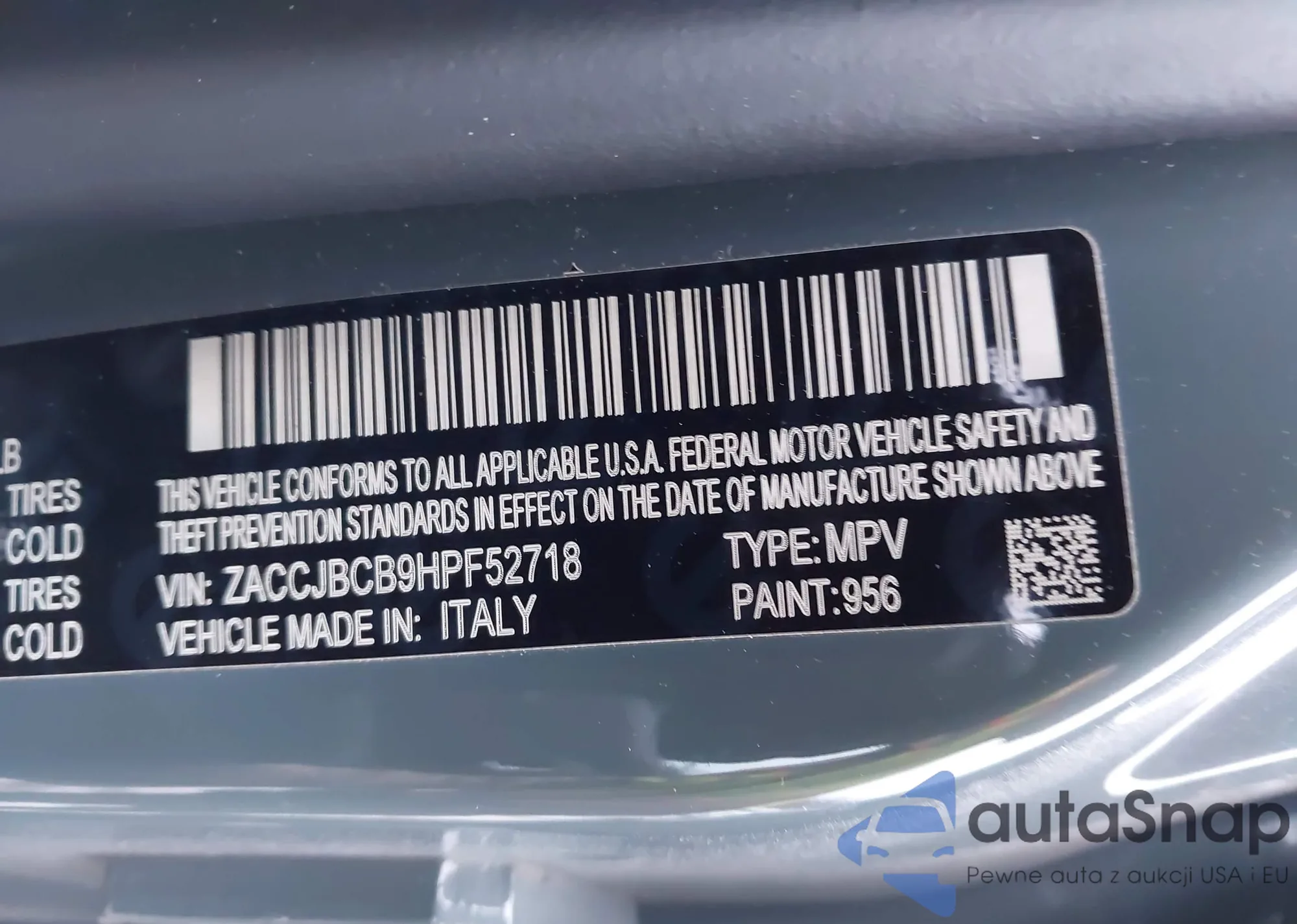• VIN ZACCJBCB9HPF52718