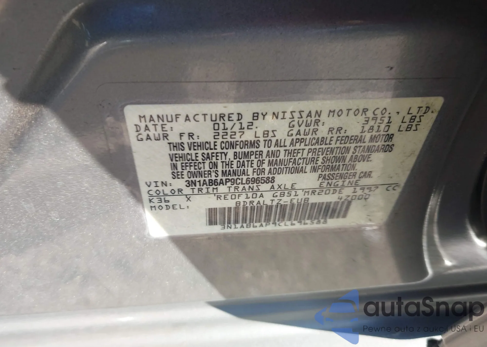 • VIN 3N1AB6AP9CL696588