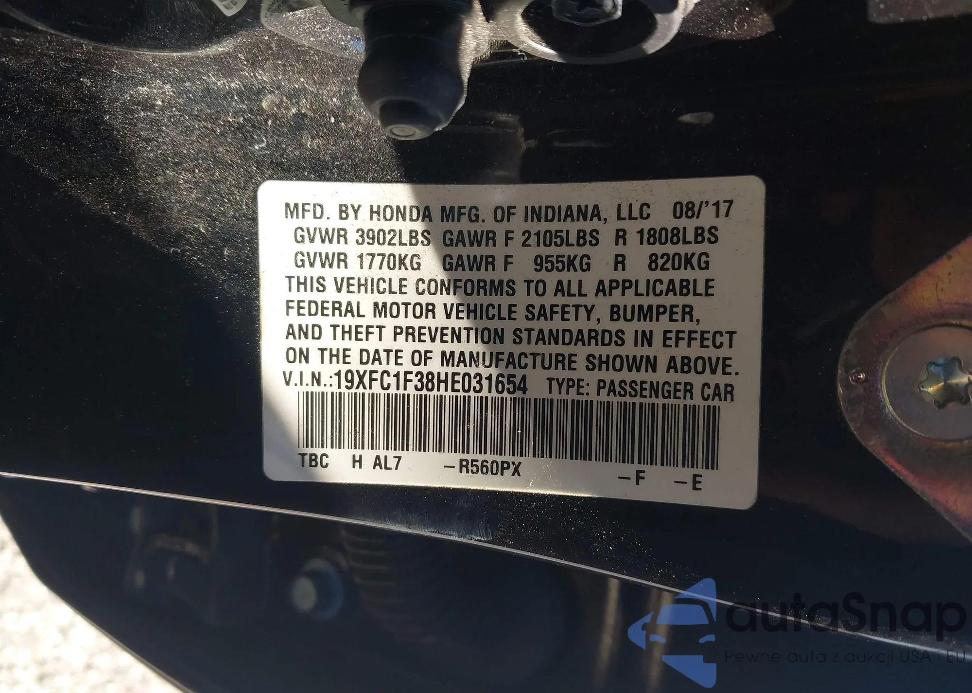 • VIN 19XFC1F38HE031654