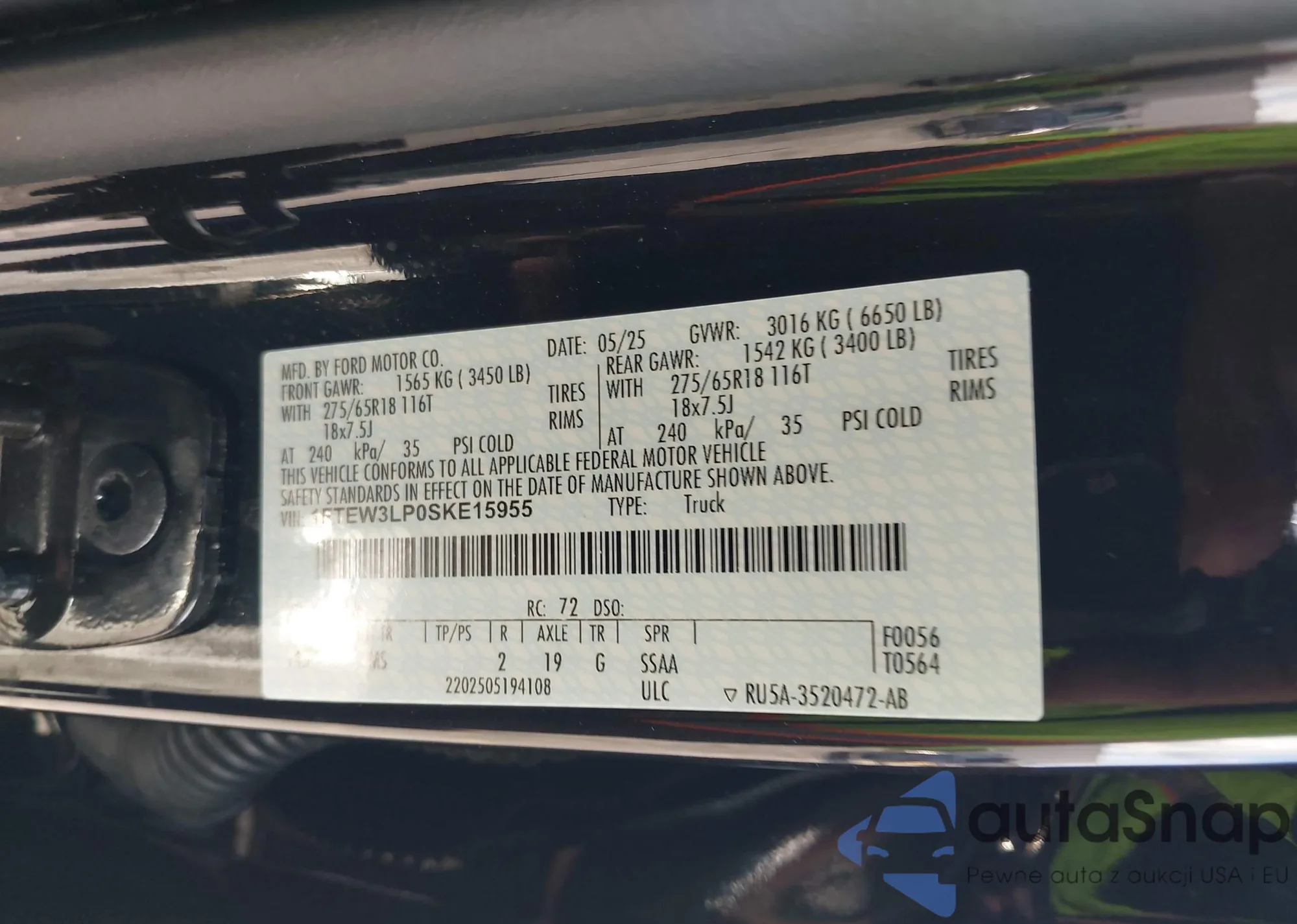 • VIN 1FTEW3LP0SKE15955