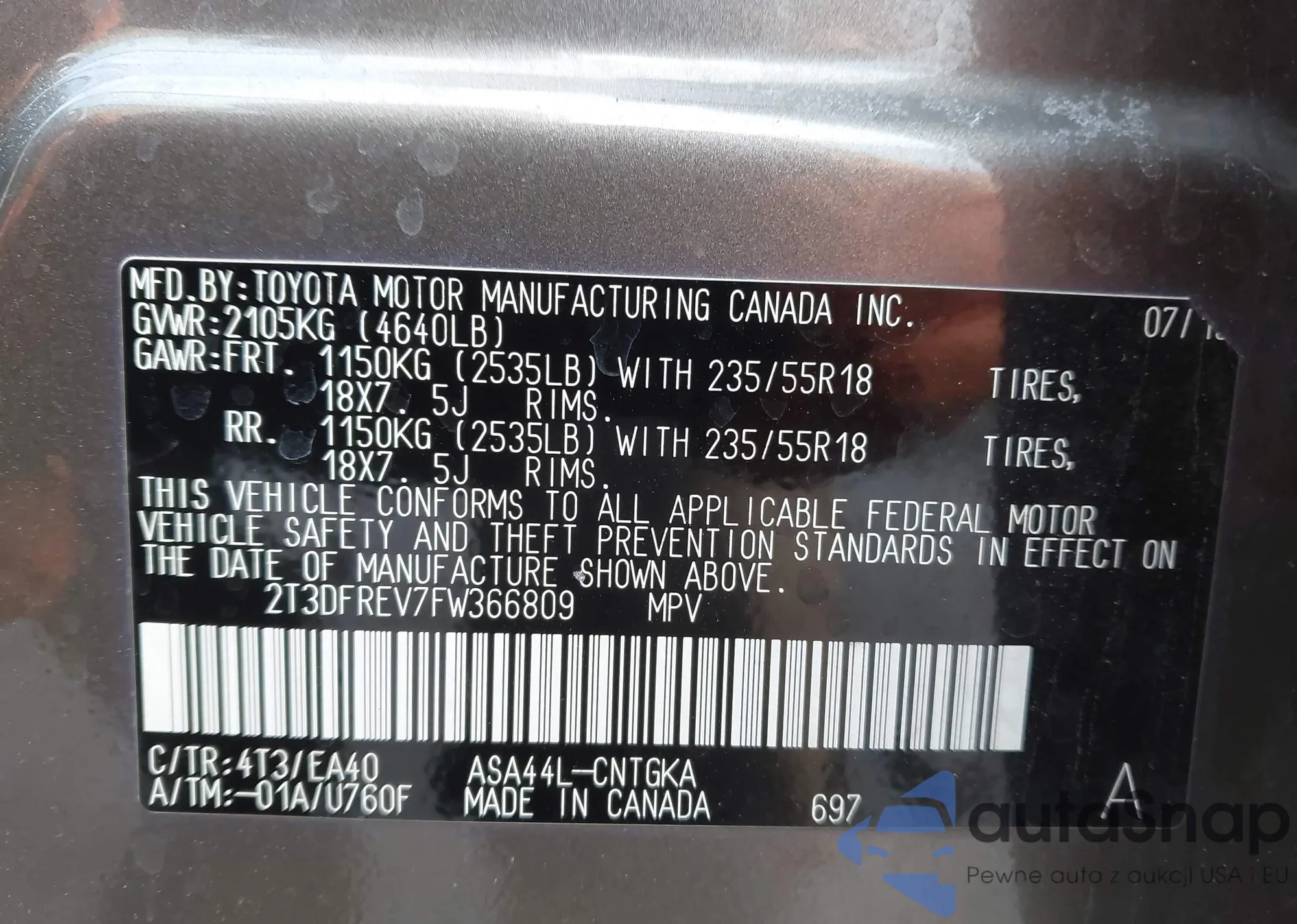 • VIN 2T3DFREV7FW366809