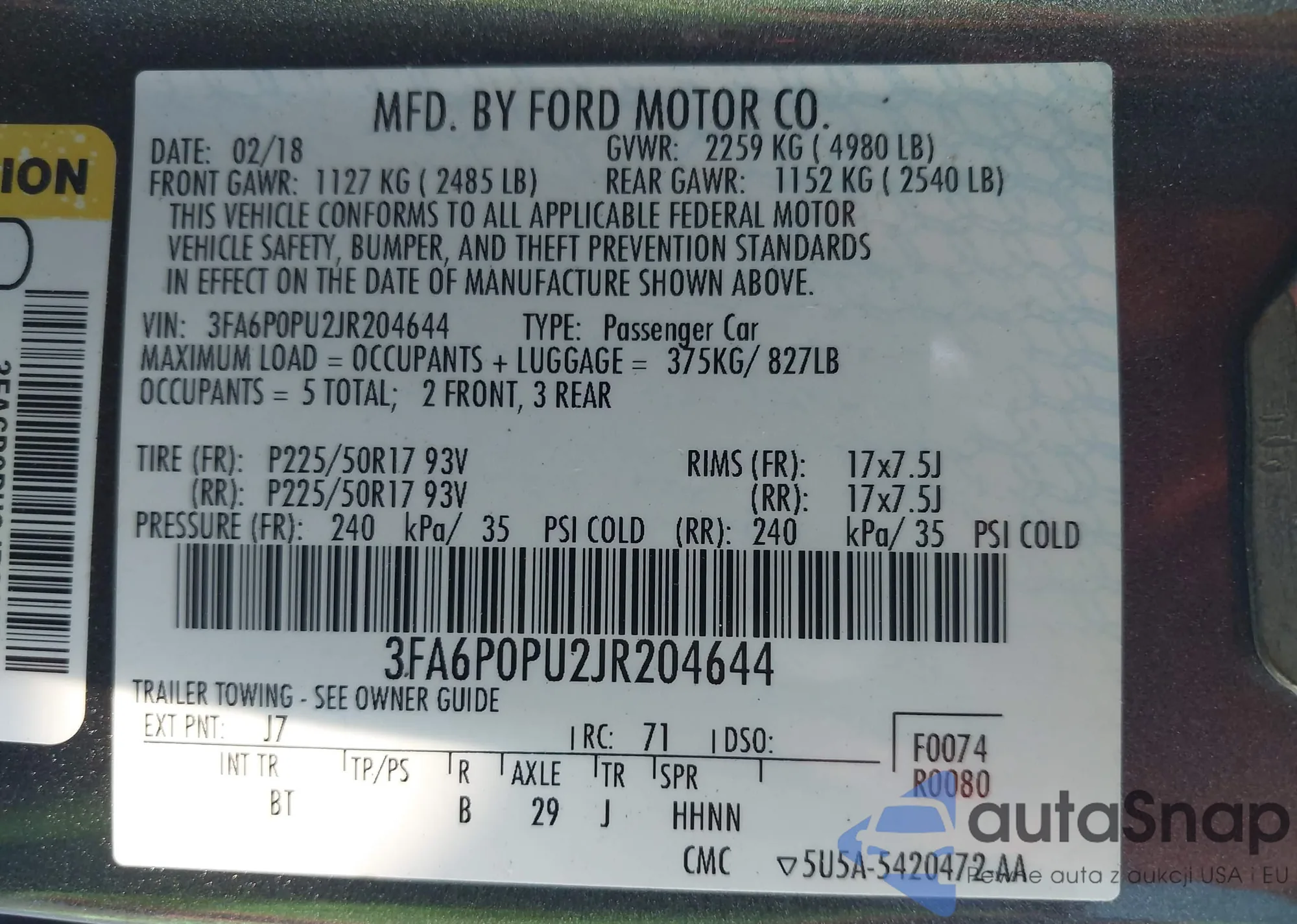 • VIN 3FA6P0PU2JR204644