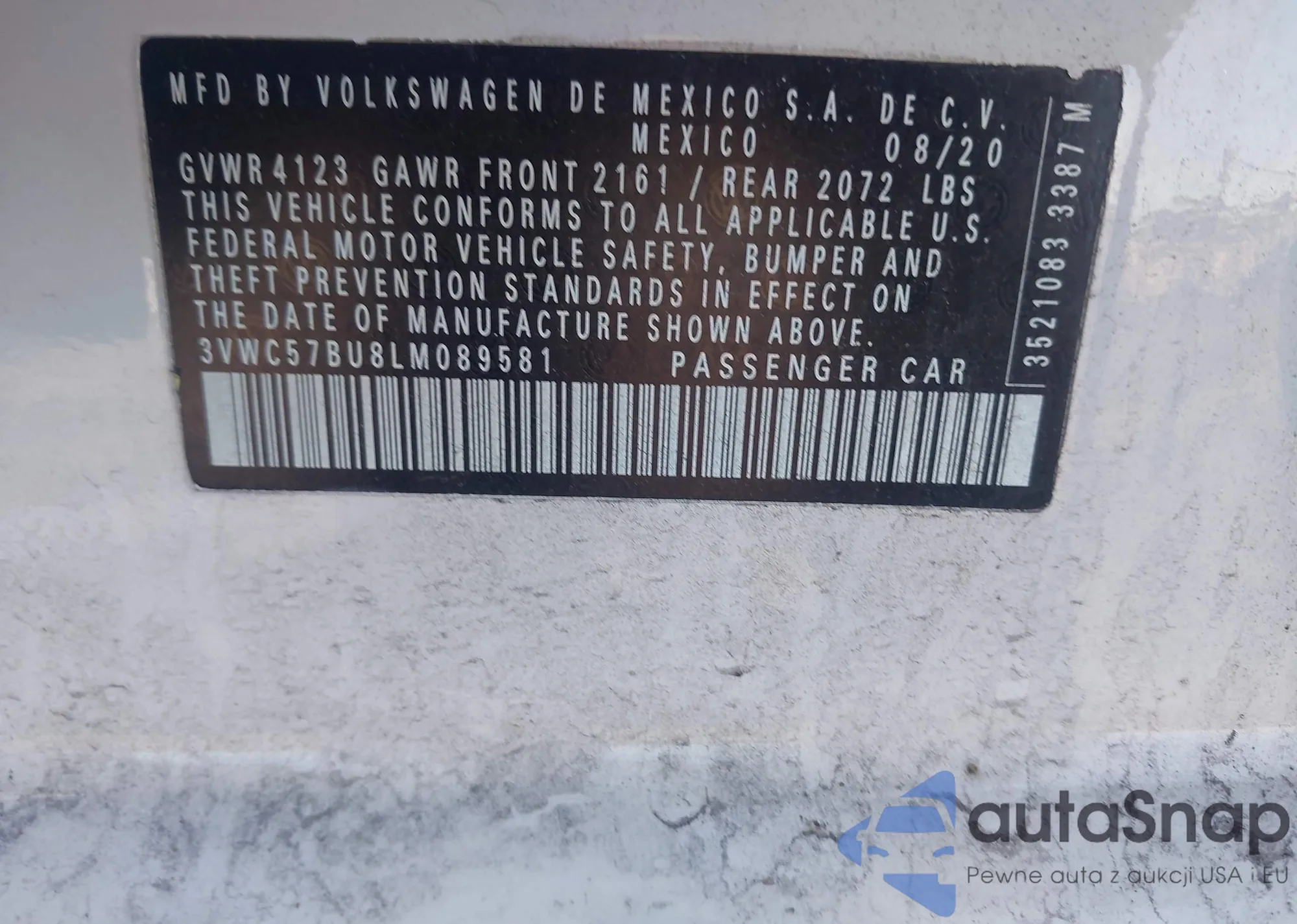 • VIN 3VWC57BU8KM061522