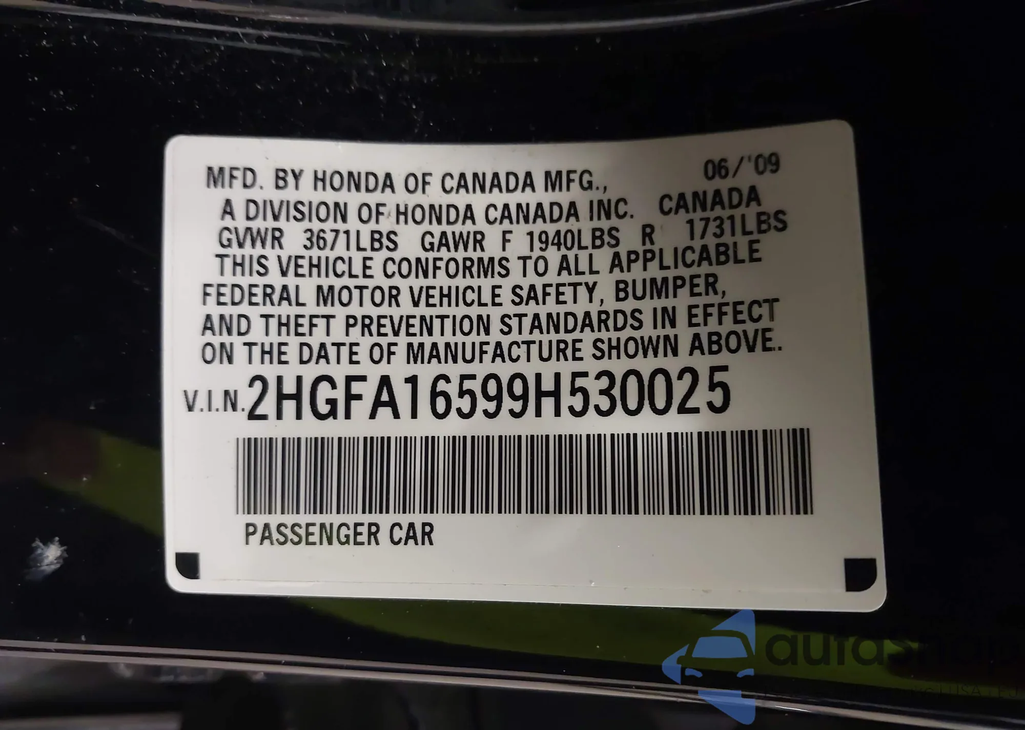 LOT: 44335448 VIN: 2HGFA16599H530025