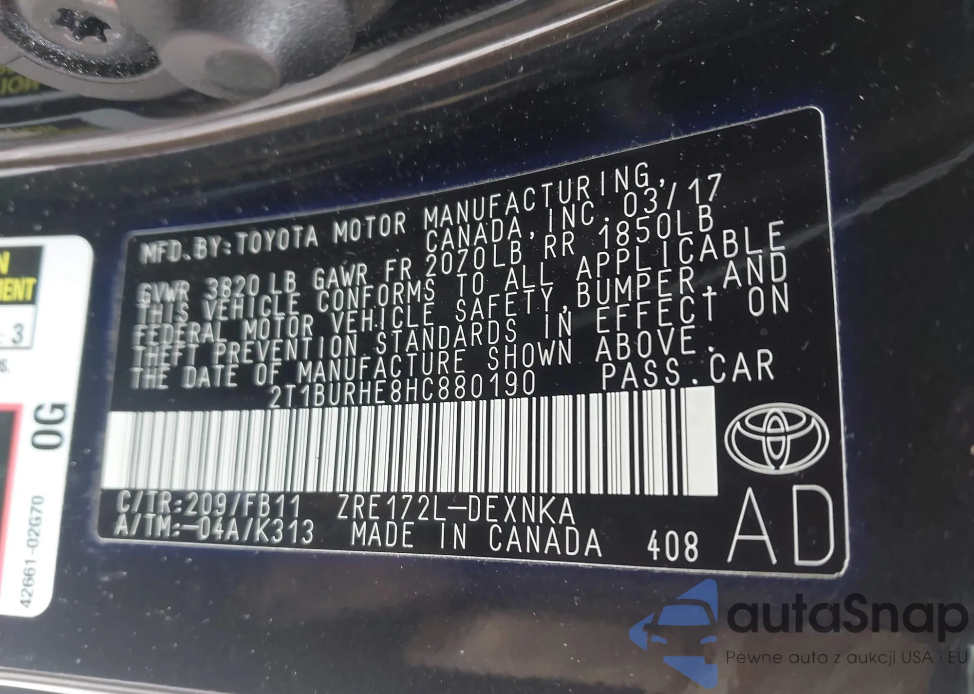 LOT: 44436414 VIN: 2T1BURHE8HC880190