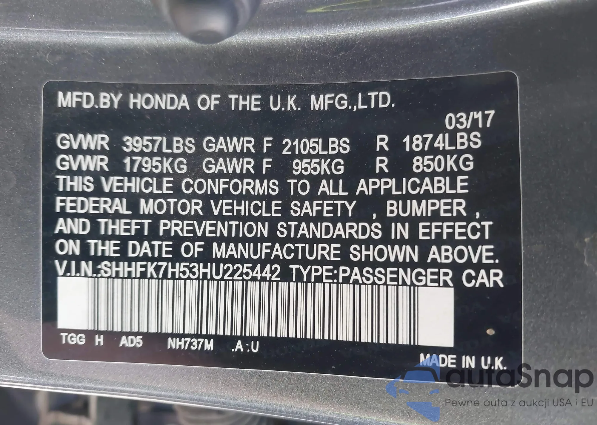 • VIN SHHFK7H53HU225442