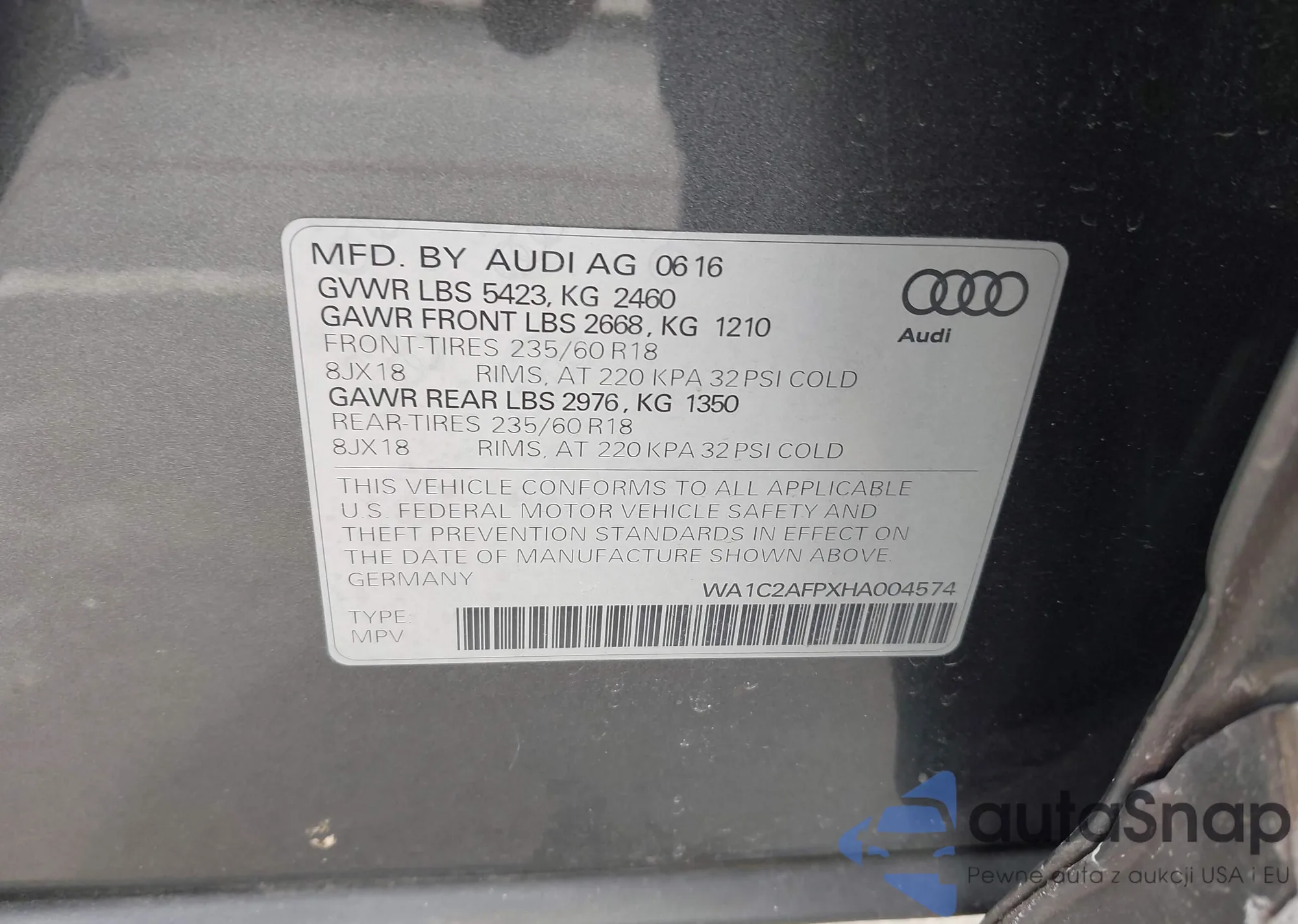 • VIN 5J6RS4H72RL005104