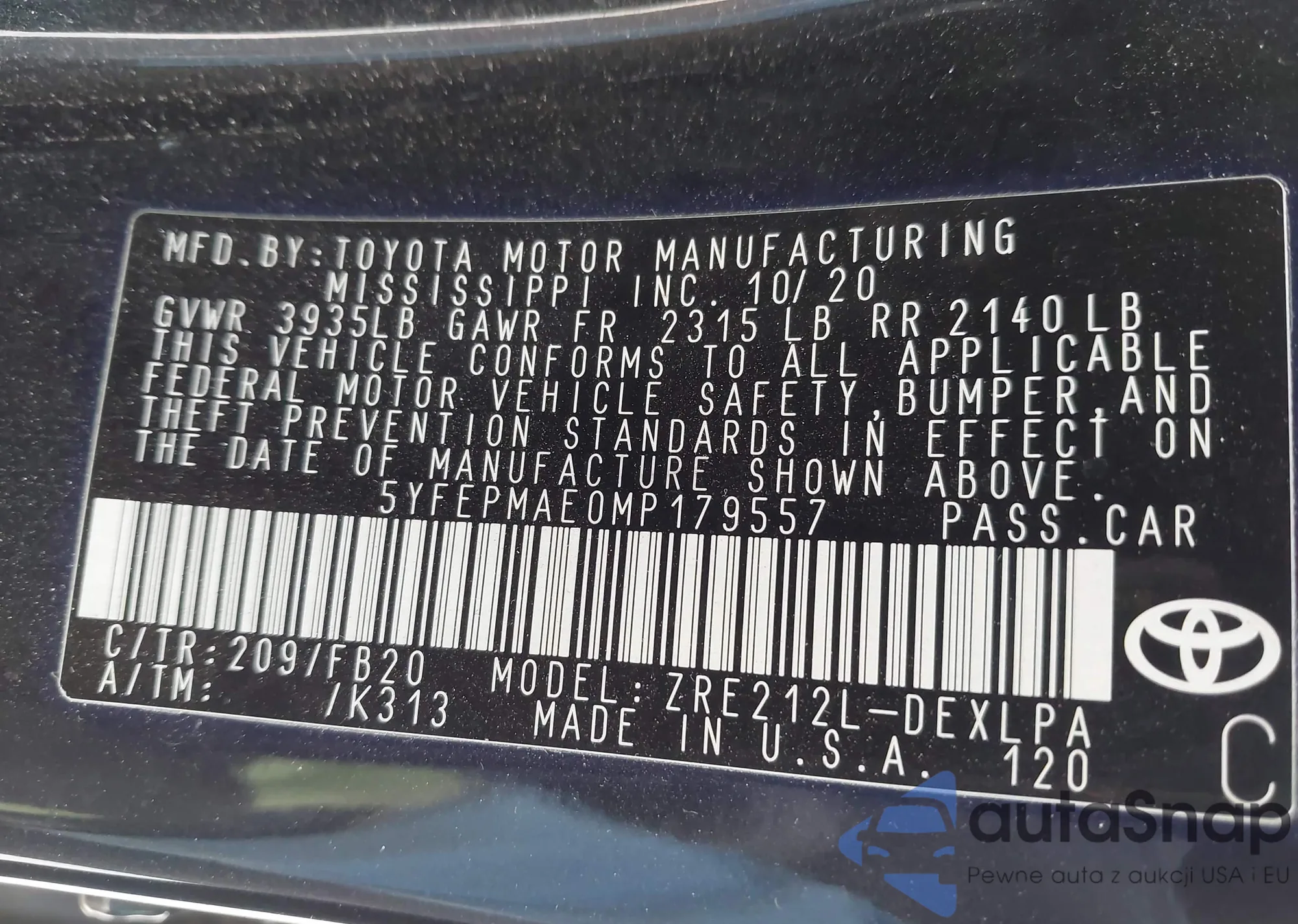 LOT: 43803179 VIN: 5YFEPMAE0MP179557