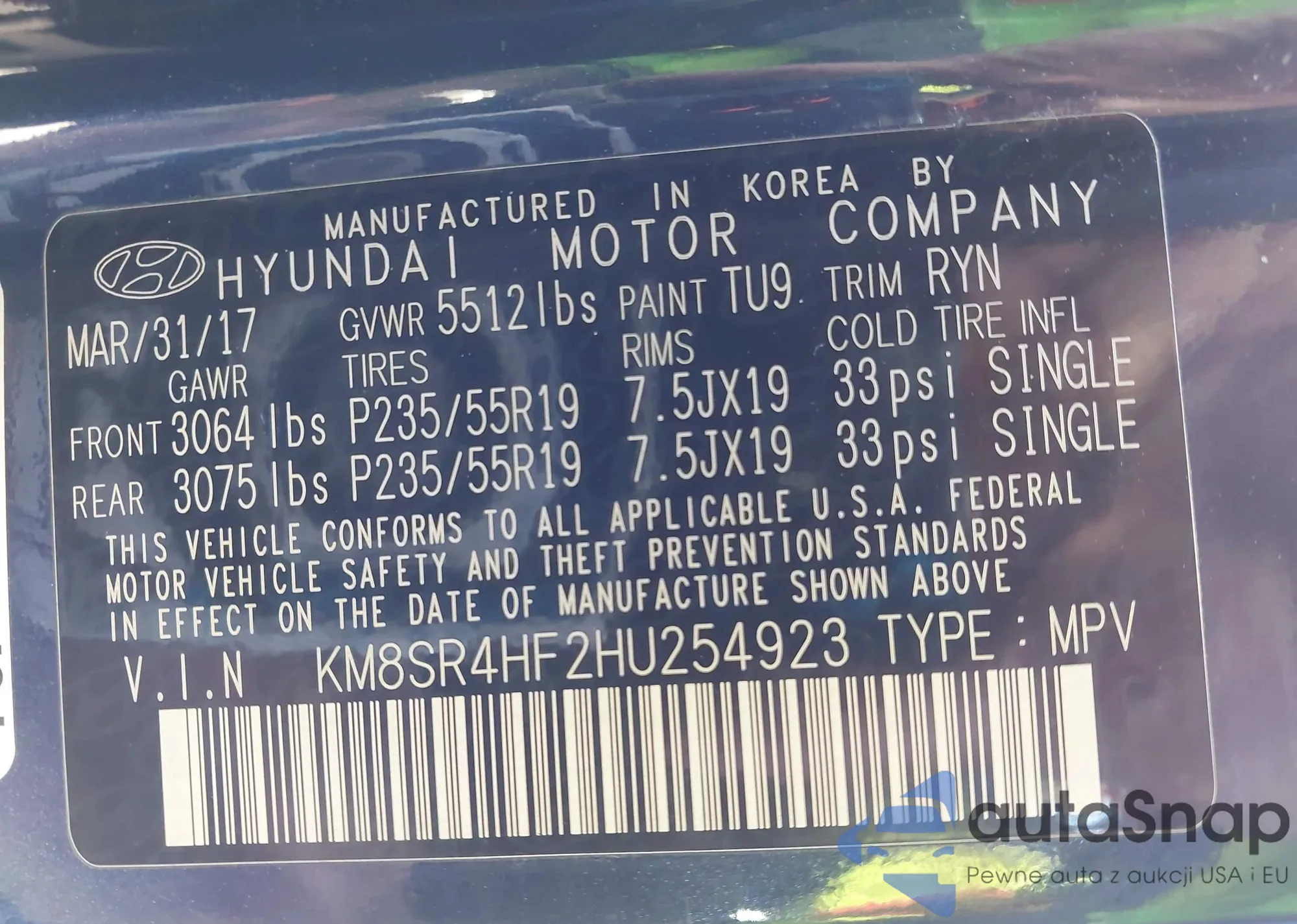 • VIN KM8SR4HF2HU254923