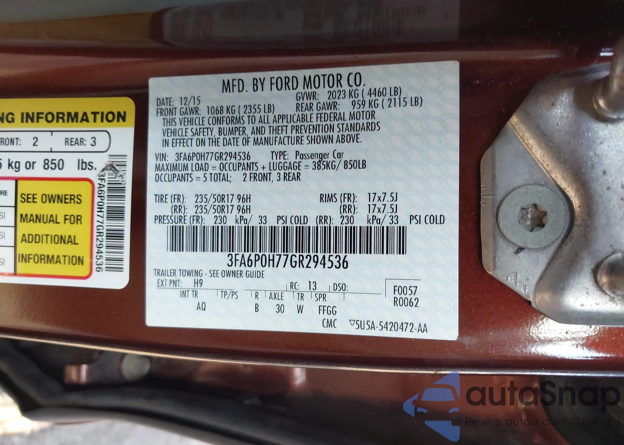 • VIN 3FA6P0H77GR294536