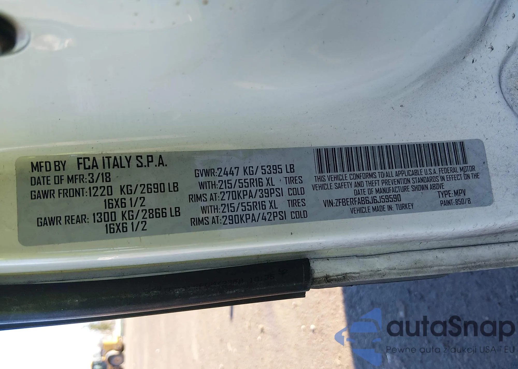 LOT: 44356793 VIN: ZFBERFAB6J6J59590