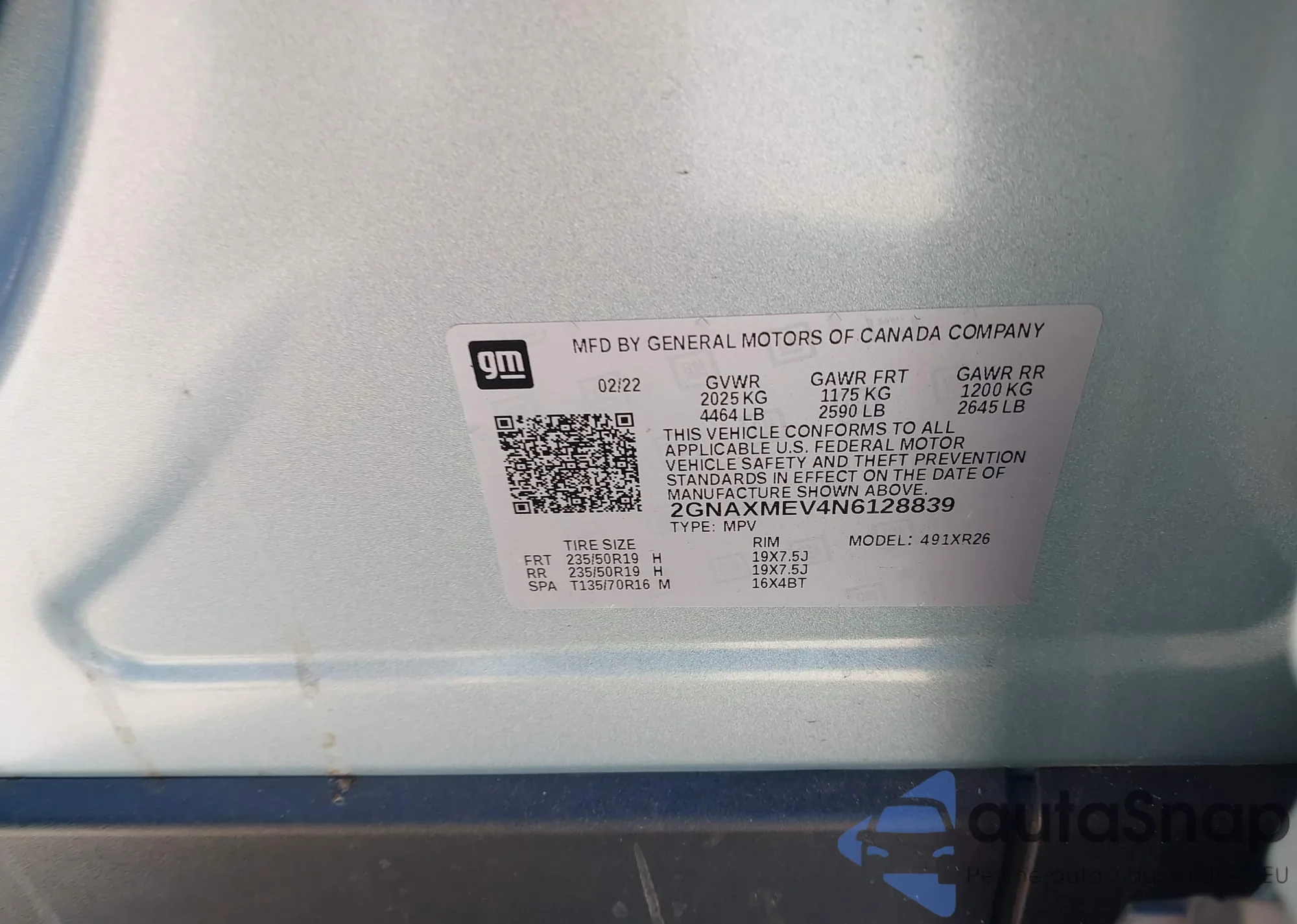 • VIN 2GNAXMEV4N6128839