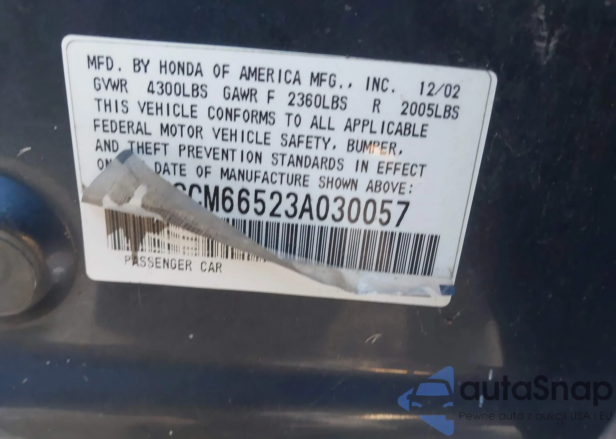 LOT: 44492000 VIN: 1HGCM66523A030057