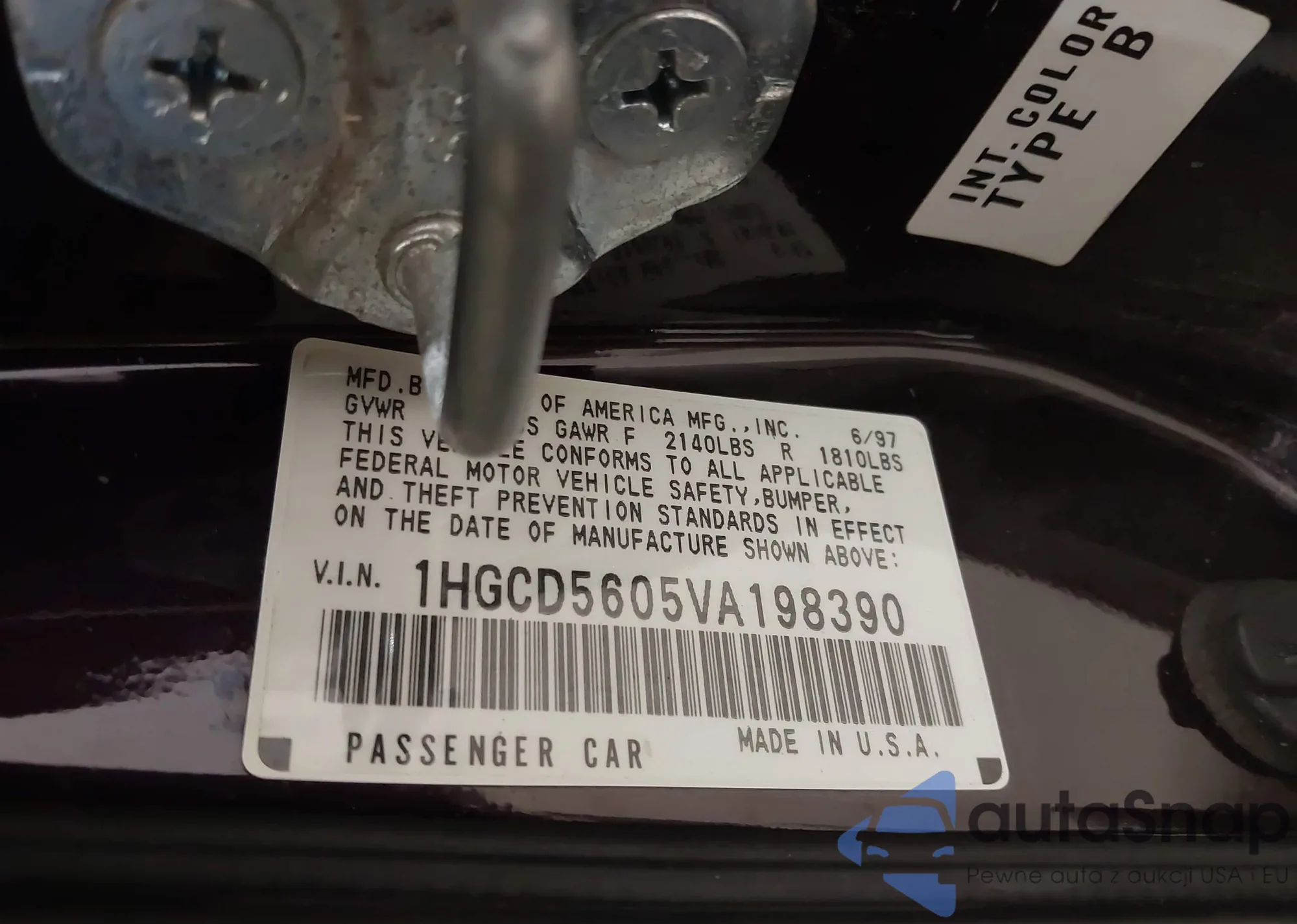 LOT: 43909747 VIN: 1HGCD5605VA198390
