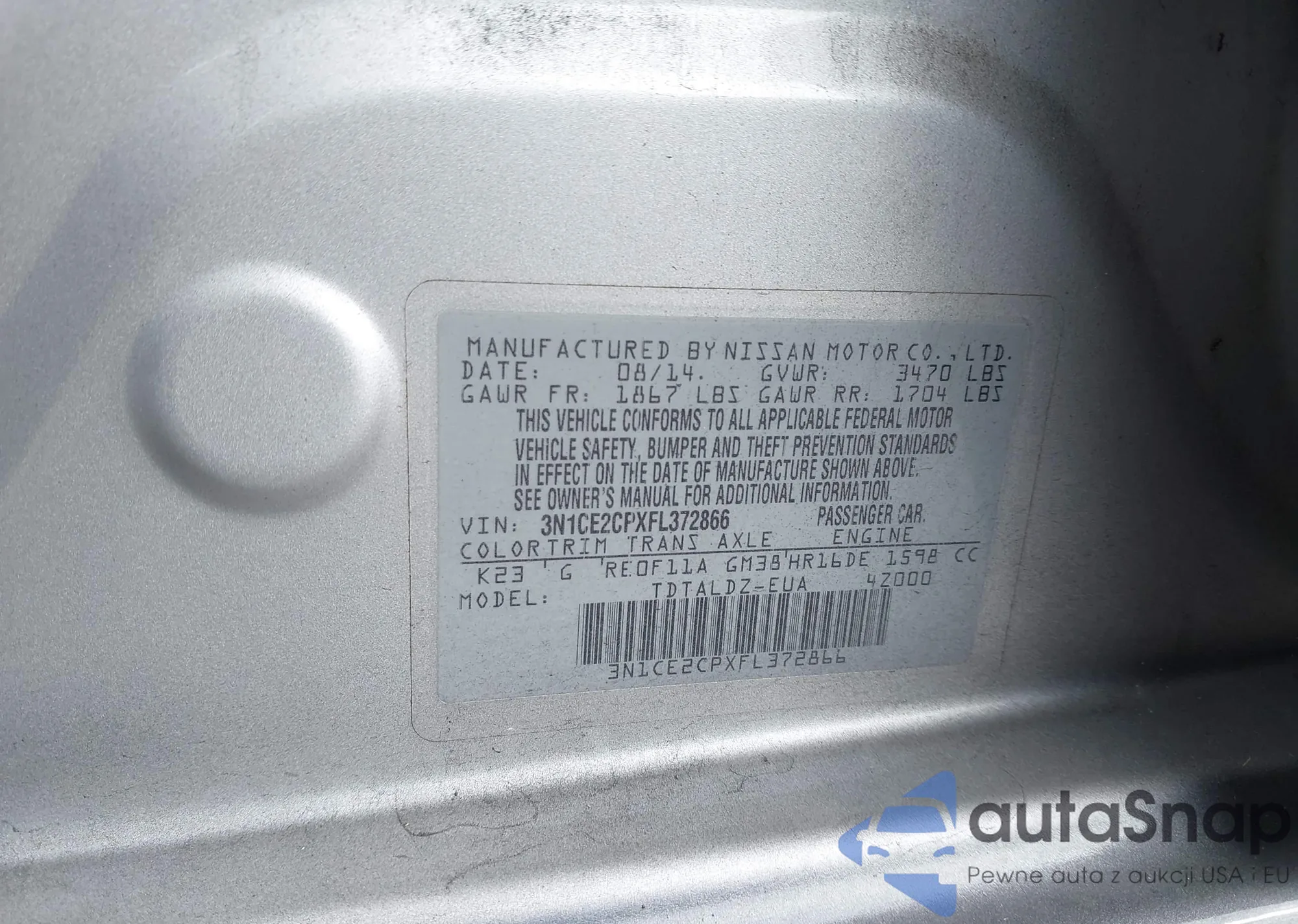 • VIN 3N1CE2CPXFL372866