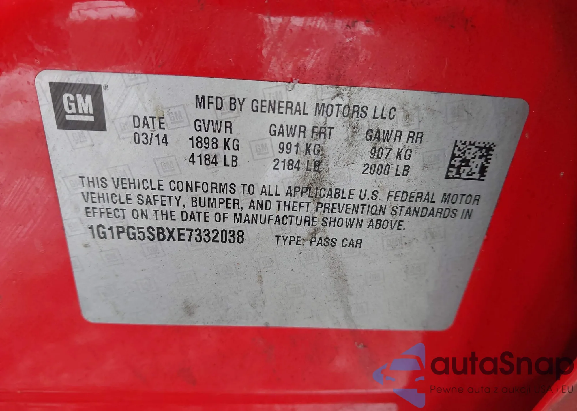 LOT: 44377274 VIN: 1G1PG5SBXE7332038